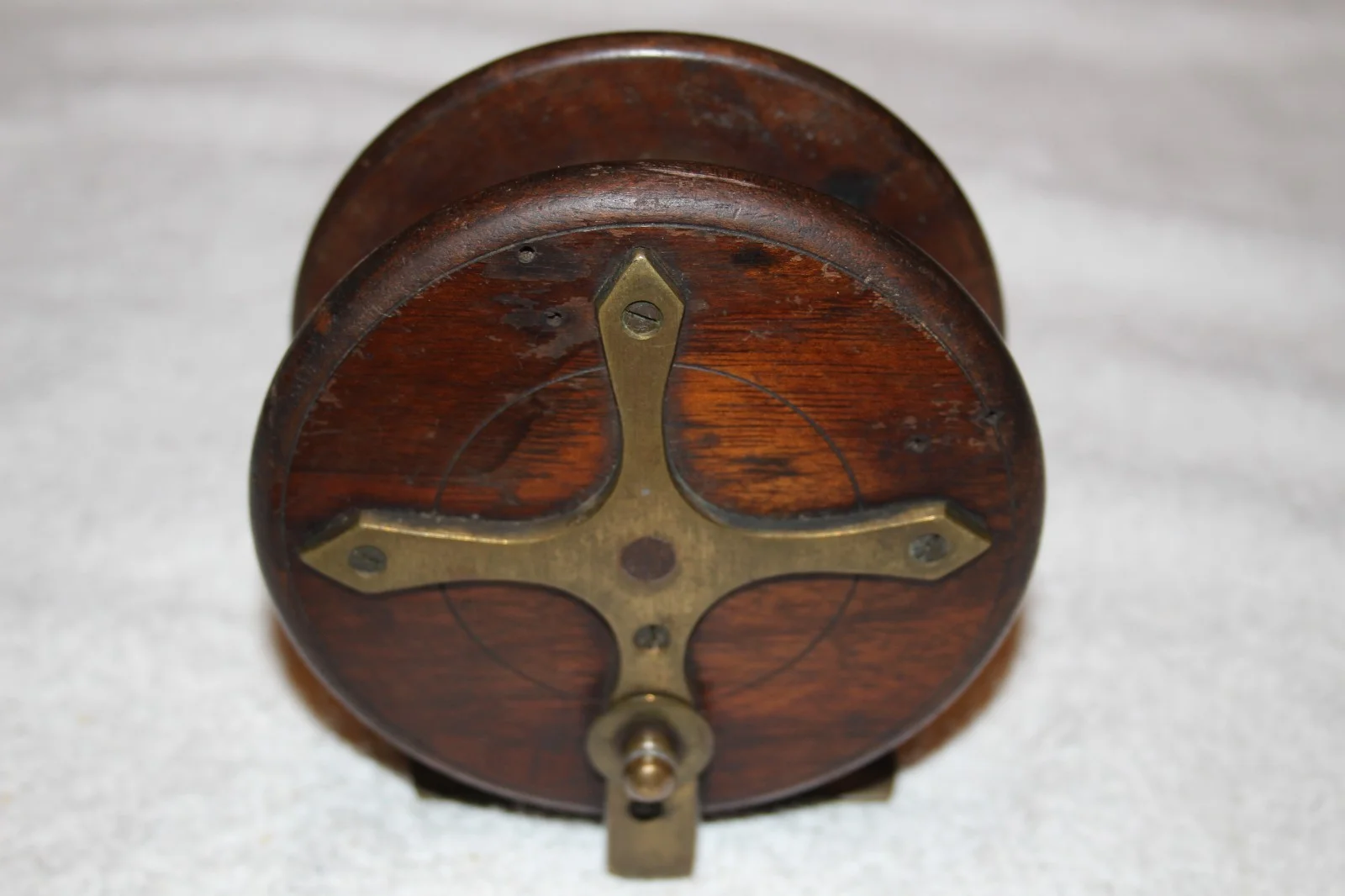 I am selling an unnamed 4" Wood and Brass Nottingham Starback Centrepin Reel in overall very good condition.It spins very well with no wobble and everything works beautifully.There are some slight cosmetic marks as can be seen in the photographs.I am happy to answer any questions but please do not ask for a buy it now price as I always allow the auction to run its course.The buyer will not be disappointed
