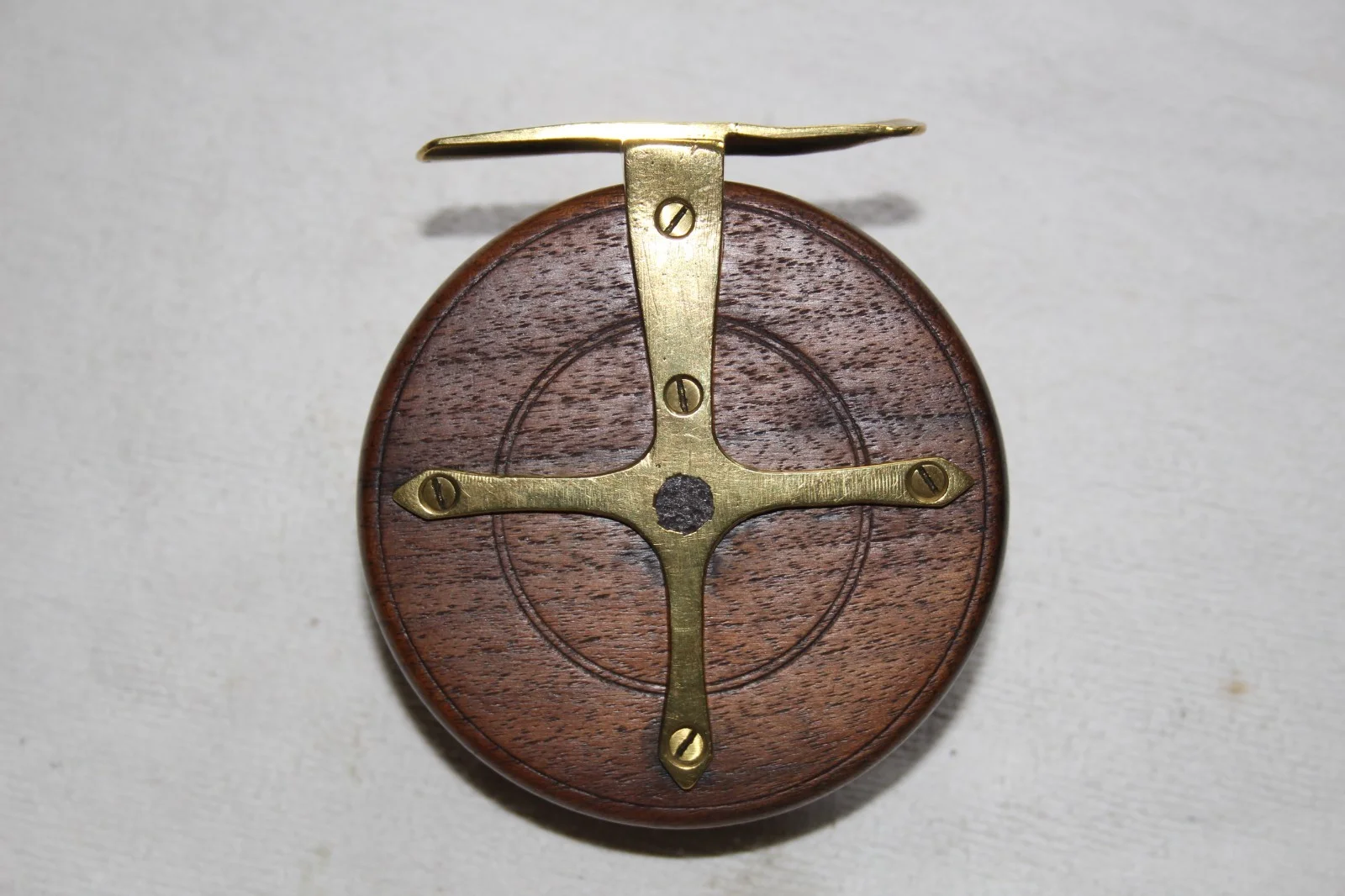 97. 3 1/2" Unnamed Wood and Brass Nottingham Starback Centrepin Reel