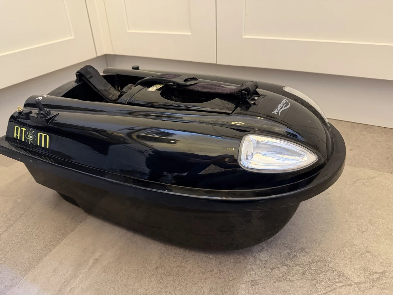 The Waverunner Atom 5.8GHz Wireless Remote Control Boat is the ultimate fishing accessory for freshwater anglers. Designed by the renowned brand waverunner, this sleek black boat is equipped with a remote control for easy operation. Perfect for RC fishing enthusiasts, this bait boat allows for precise control and manipulation of bait, increasing chances of a successful catch. The wireless remote control boat offers a convenient and efficient way to enhance your fishing experience.Well used, supplied with 4 batteries and a carryall. Boat is in working condition, I have replaced the remote control module recently. There are some minor scratches to the front.