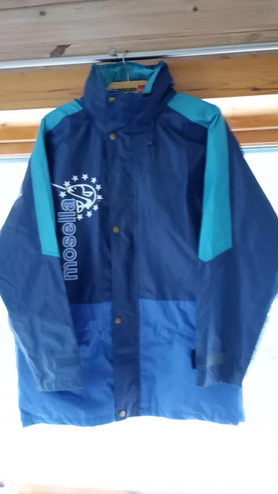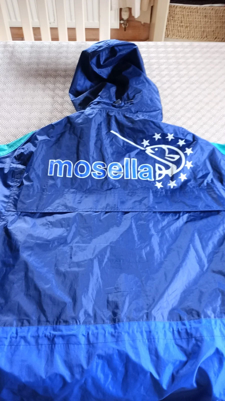 Retro Mosella JacketSize S but much more a good medium.Blue with GreenNylon outer and a warm inside lining with pack away hood.There's a small hole on the right between pocket and the zip which is also evident on the inside(last 2 pictures)Otherwise in good condition.Thanks for looking.