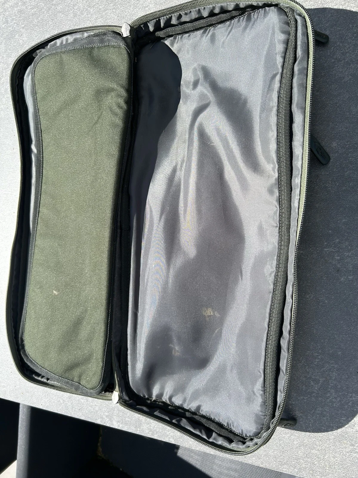 3 Rod Buzzar Bar Bag-really nice quality buzzar bar bag, the extra zipped pockets on the front are great to drop the alarms and spares with batteries etc, into to keep em safe and stop everything rattling around. plenty of room for bars plus indicators in the main compartment with dividers. dont be put off by the manuafacturer, i have another two of these i use and they are spot on for no money!used so a few marks that will certainly wipe off , otherwise all sound.