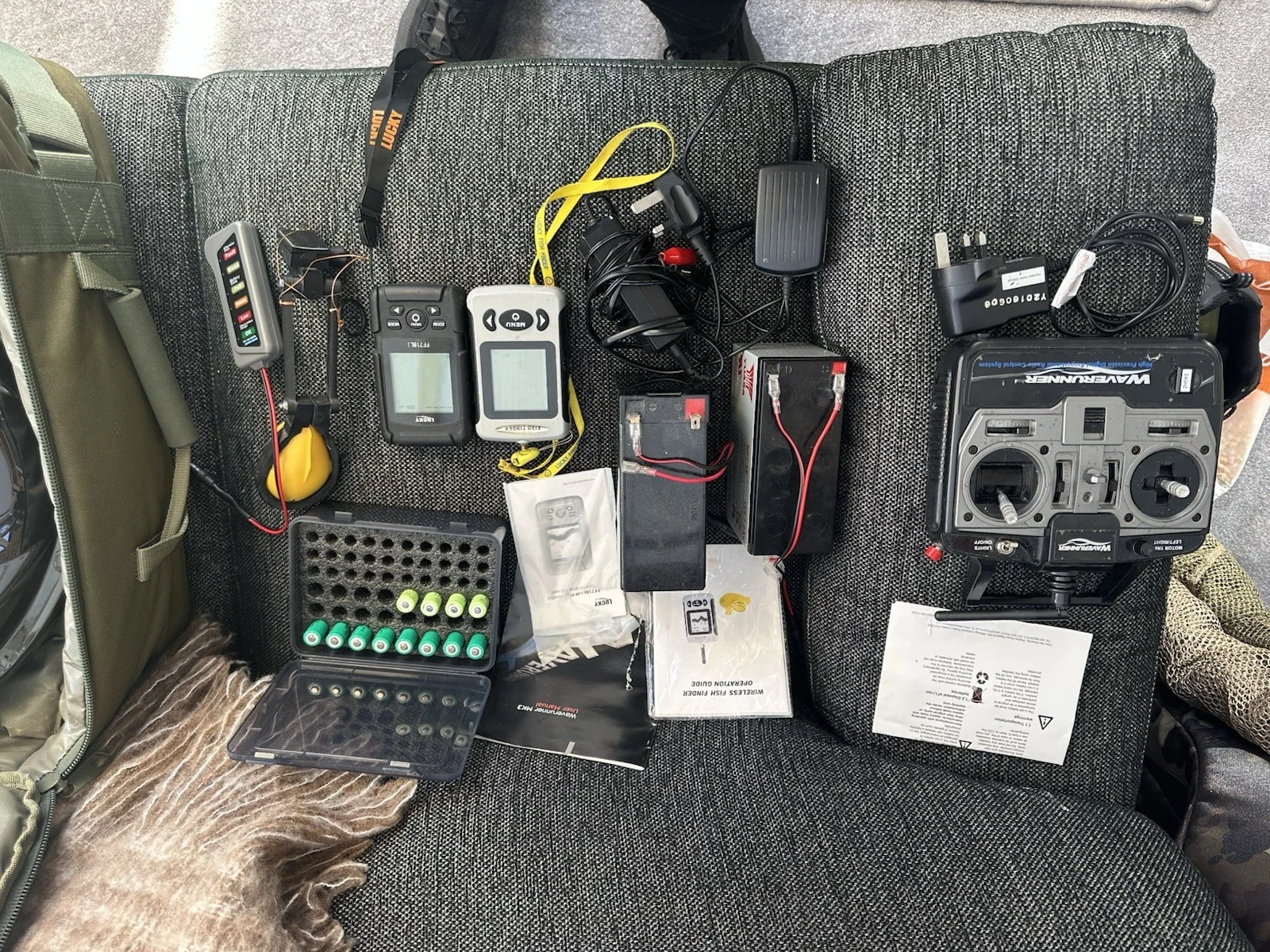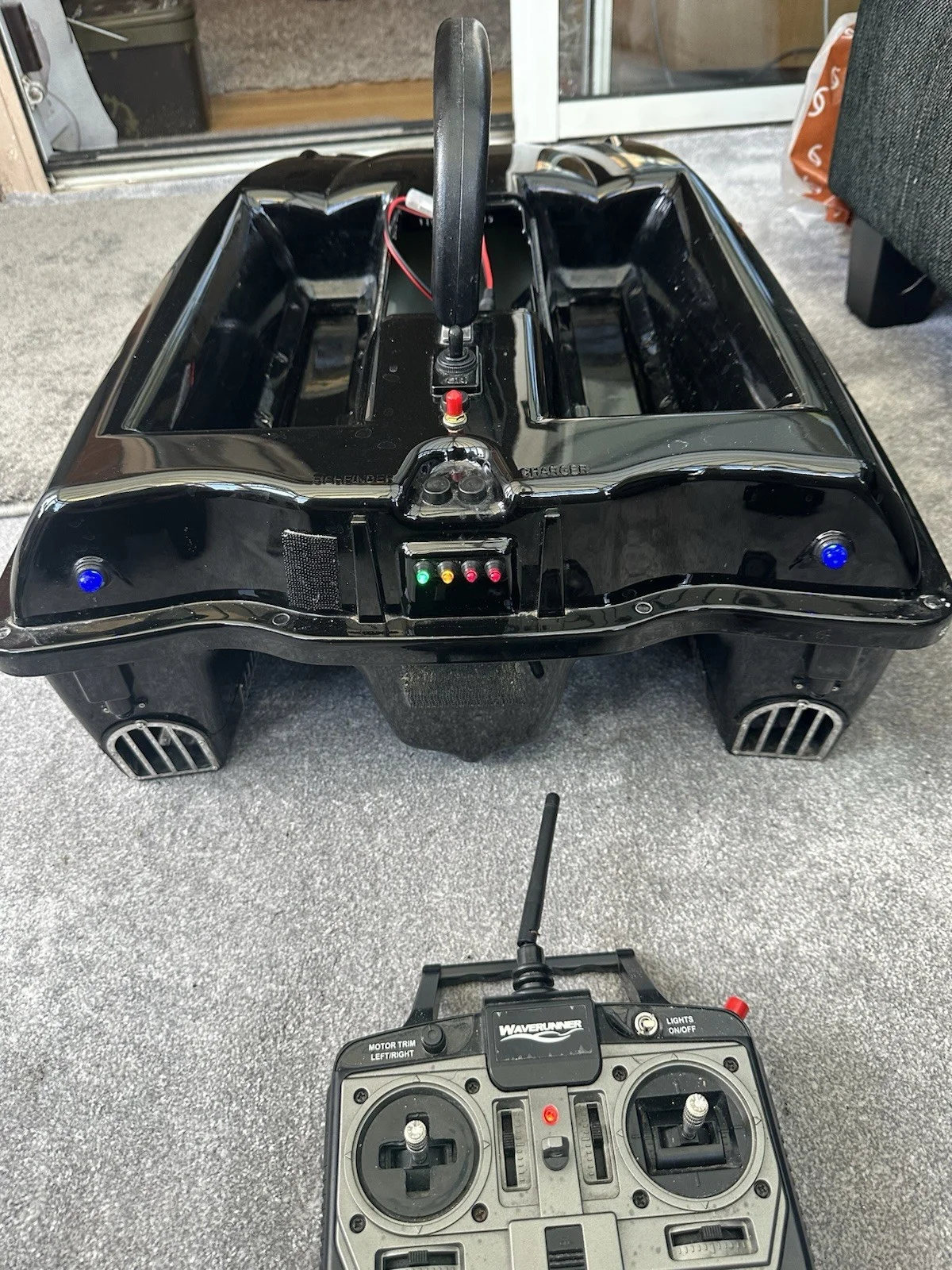 Wave runner bait boat double hoppers two fish finders 4 batteries for boat 2sets of batteries for handset solar panel new all working collection only