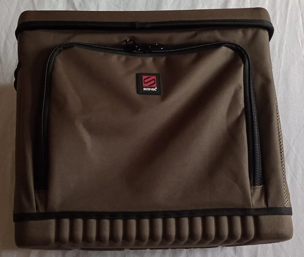 ## Sonik Storz 36L plus Sonik Storz Tabletop 400 - VGC (see photos) ##Details:Sonik Storz 36L , foldable, wt 1.1kgh33 x w40 x d30cmmodular, stackable, internal steel frame (top fixed, collapsible each end),HD moulded EVA base, No10 zips, red puller (taken off, will supply in poly bag) front and top access, 2 end mesh pockets, removable adjustable padded shoulder strap Sonik Storz Tabletop 400 , wt 222g, 40 x w30 x d3.5cm (FC0080 int lip 2.5cm)moulded EVAclips on top of Storz '36L' acts as bivvy tray & adds protection to top of bagincluded 2 photos to show the bag when collapsedNOTE: the last photo shows additional padding added to three sides when it was used to carry electronic item (I will include these)I attempt to describe items as accurately as possible to be fair to the buyer, please take a few moments to have a look at my other auctions.I will always leave feedback, but only after the buyer has confirmed the item has been received and is as listed.Postage is estimated on weight and parcels are sent UK recorded delivery or parcel force as appropriate, if Southern Ireland e-mail for cost.DUE TO RECENT PROBLEMS WITH TIME WASTERS NON PAYERS WILL BE REPORTED TO EBAY AFTER 5 DAYS