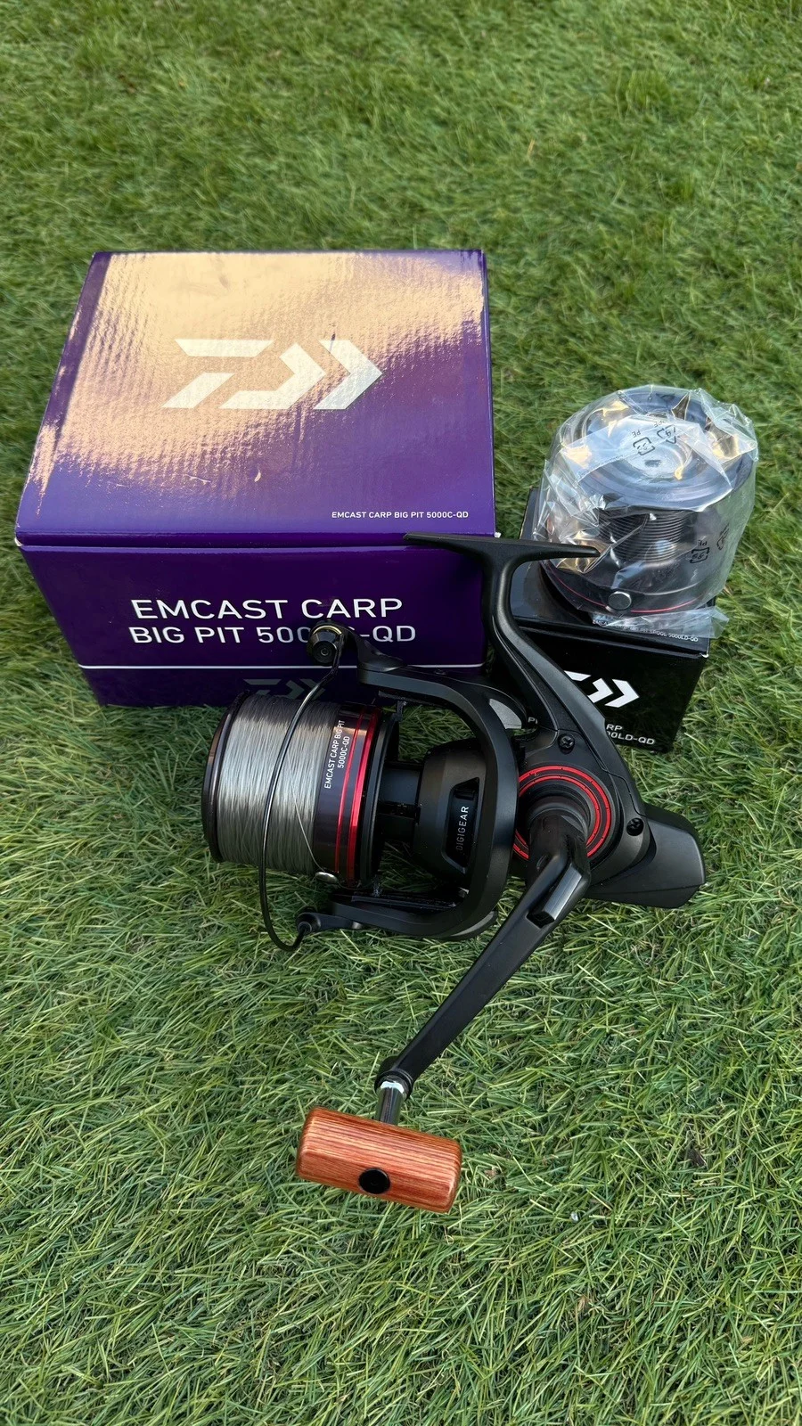 Daiwa Emcast 5000C-QD carp big pit fishing reel in excellent condition. Only used once and comes with a brand new spare spool. Very clean reel and in great order overall. Ideal for carp fishing and ready to use.