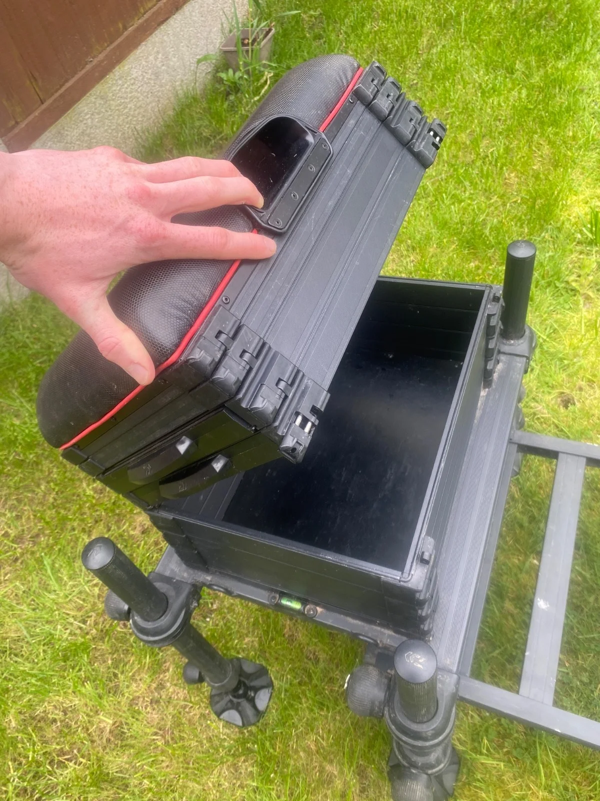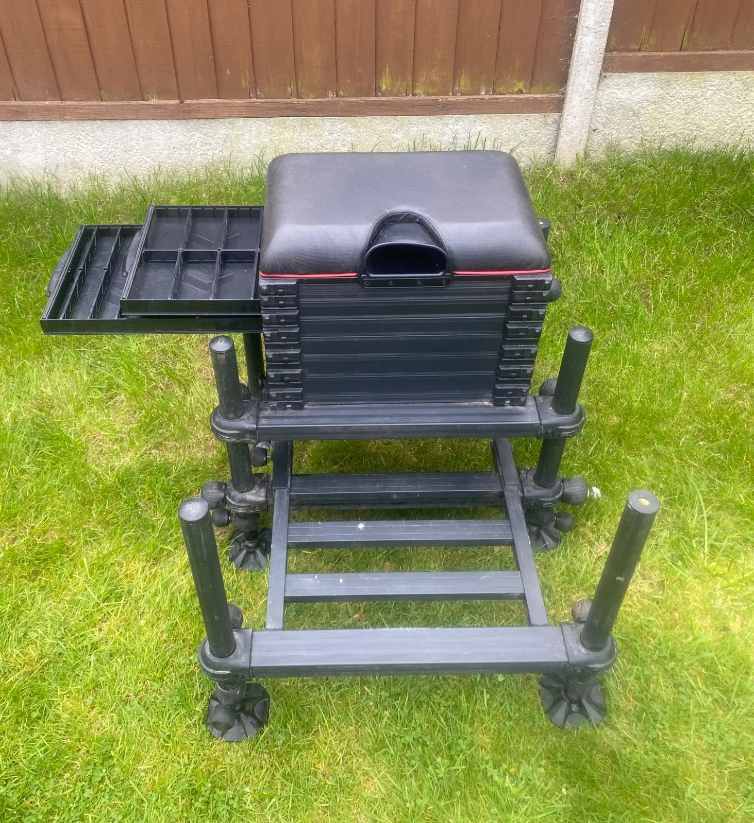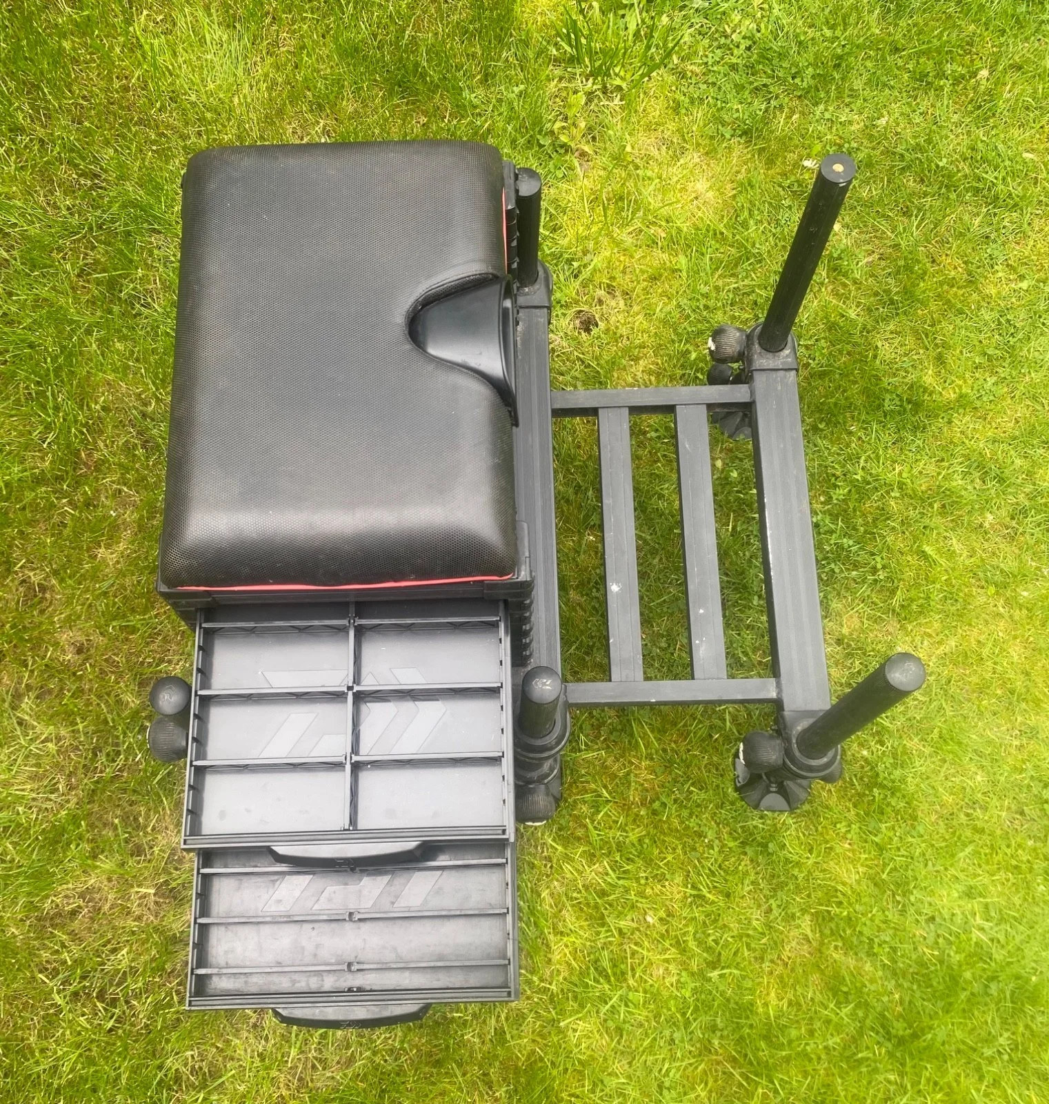 COLLECTION ONLY! Daiwa D90 Seatbox- 36mm legs, and the box is solid as a rock! - Spirit levels on the edges of the box.- 2 drawers with inserts. - Really deep bottom tray. - Some minor damage to the cushion and scratches on the footplate but a complete functional and mega reliable box!