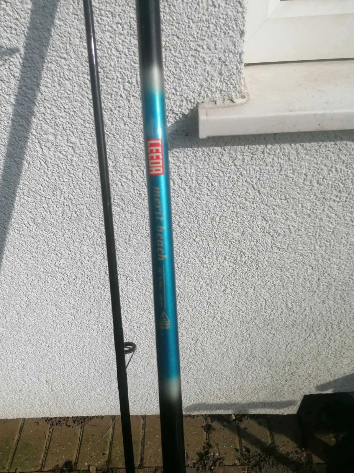 a pair of abu garcia gold feeder rods models 7110 11.6 ft and 7120 12 ft