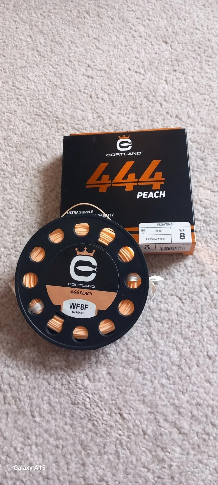 CORTLAND 444 CLASSIC PEACH FLOATING FLY LINE #8.USED TWICE OVER A COUPLE OF HOURS ,IN EFFECT AS NEW .