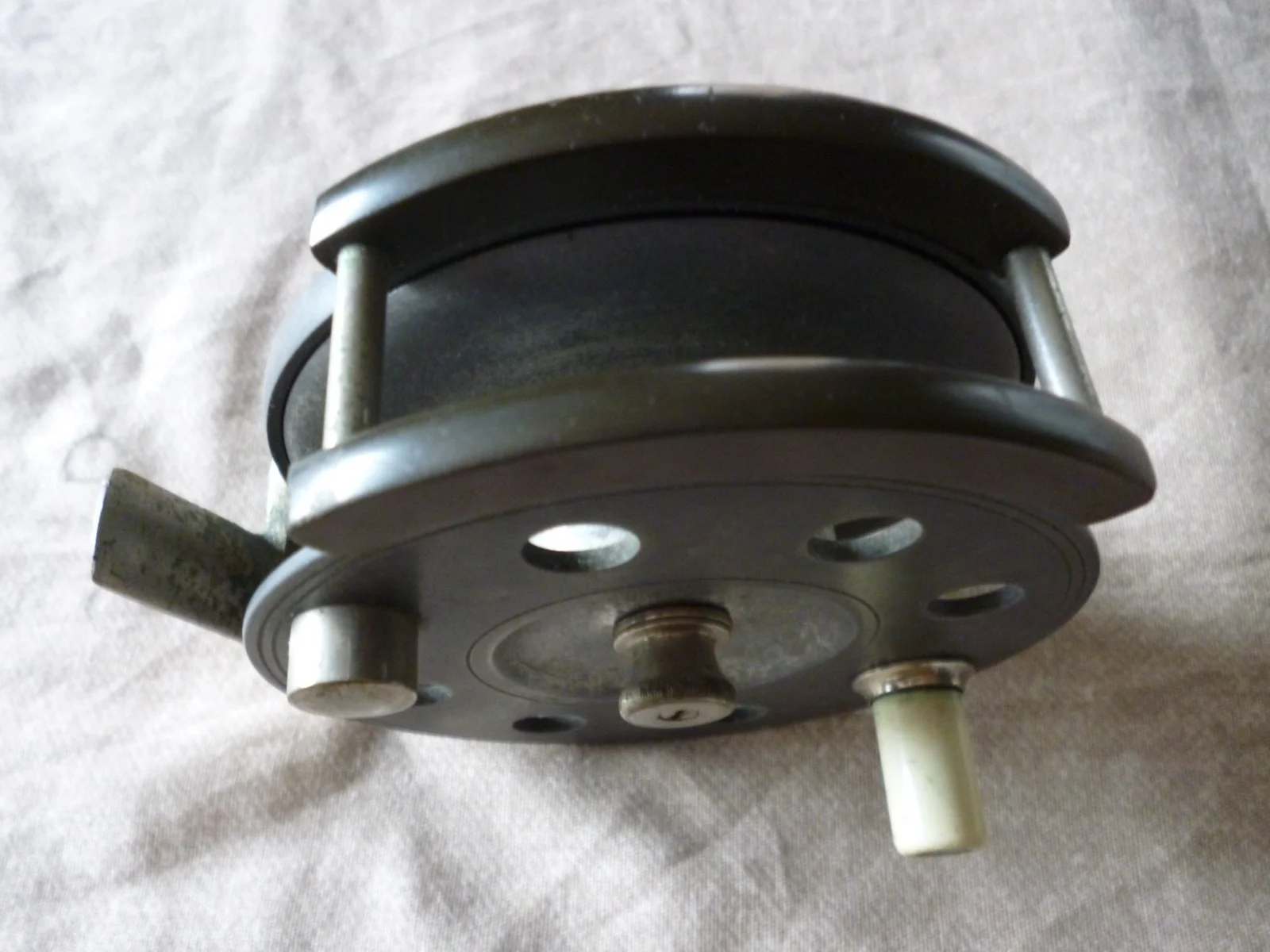 A vintage 3 3/4" dia un named, Wilkes Osprey trout reel in great working condition with B P lineguard with roller spindles. Chromed spool securing / regulating knob, counter balance, foot and spine which is stamped, Made in England. Please see all photos.