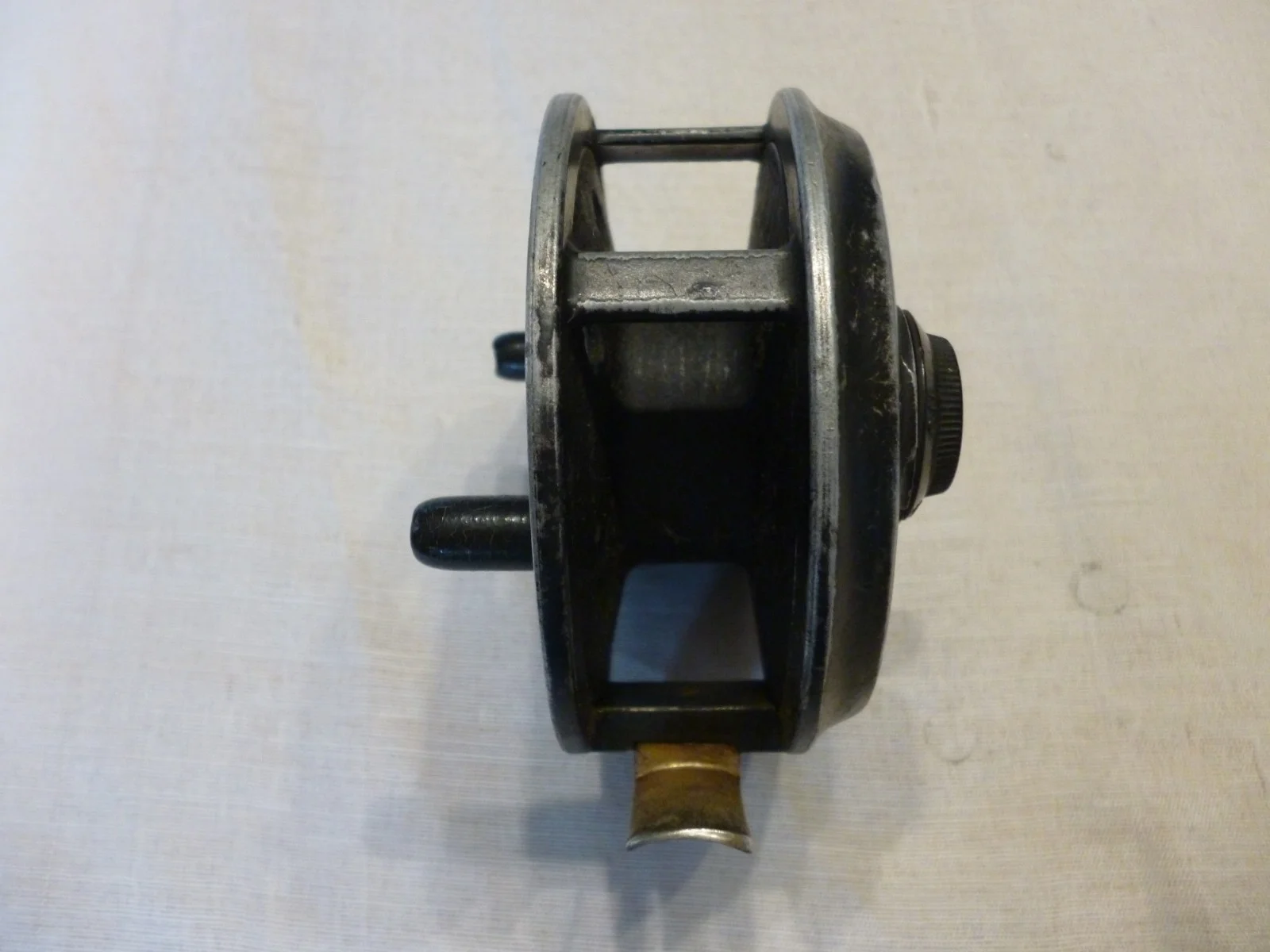 A lovely vintage 3 1/2" dia. 'Gyrex' spinning reel in great working condition. It features an anti back lash casting device that is adjusted via the bakelite knob on the back plate. A very unusual reel that retains most of its original finish and spins very well when the brake lever is held down, as when casting a weighted bait. Please see all photos.