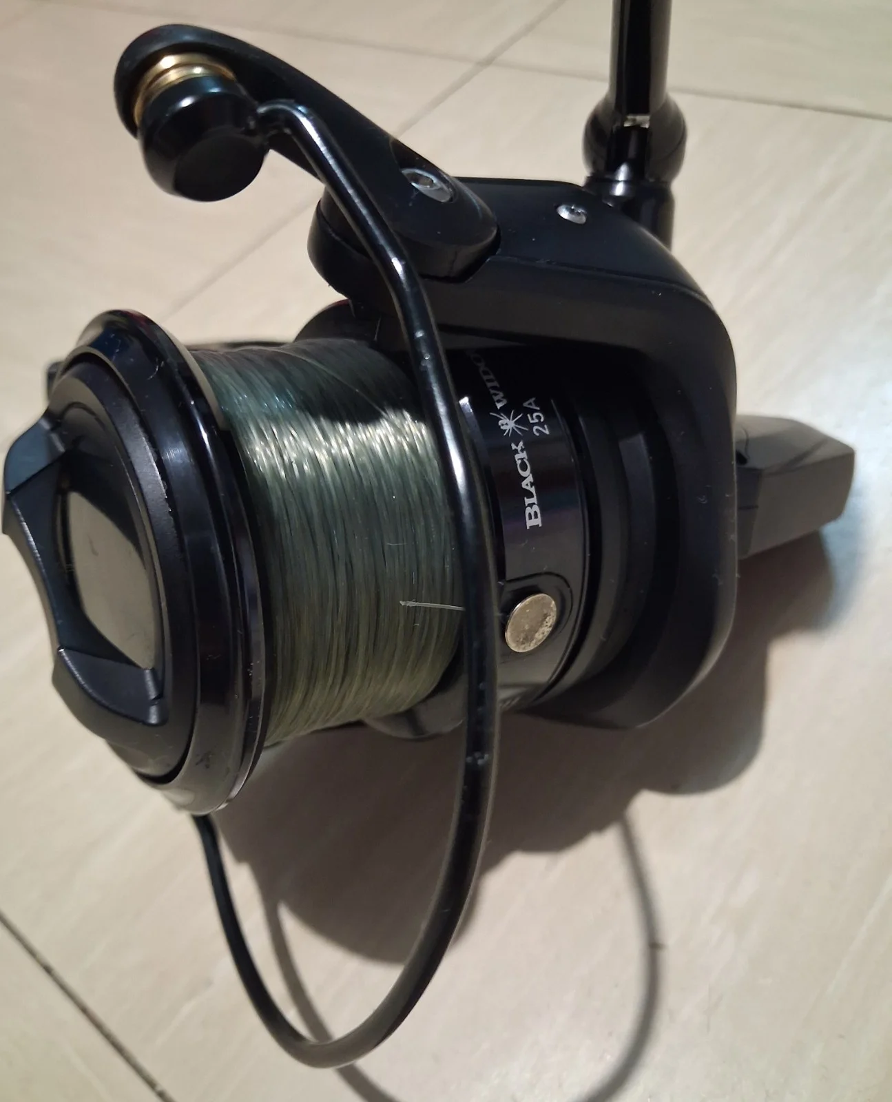 daiwa black widow fishing reel. in used condition with a bit of cosmetic wear and tear. some scratches here and there but works well so grab yourself a reel good deal