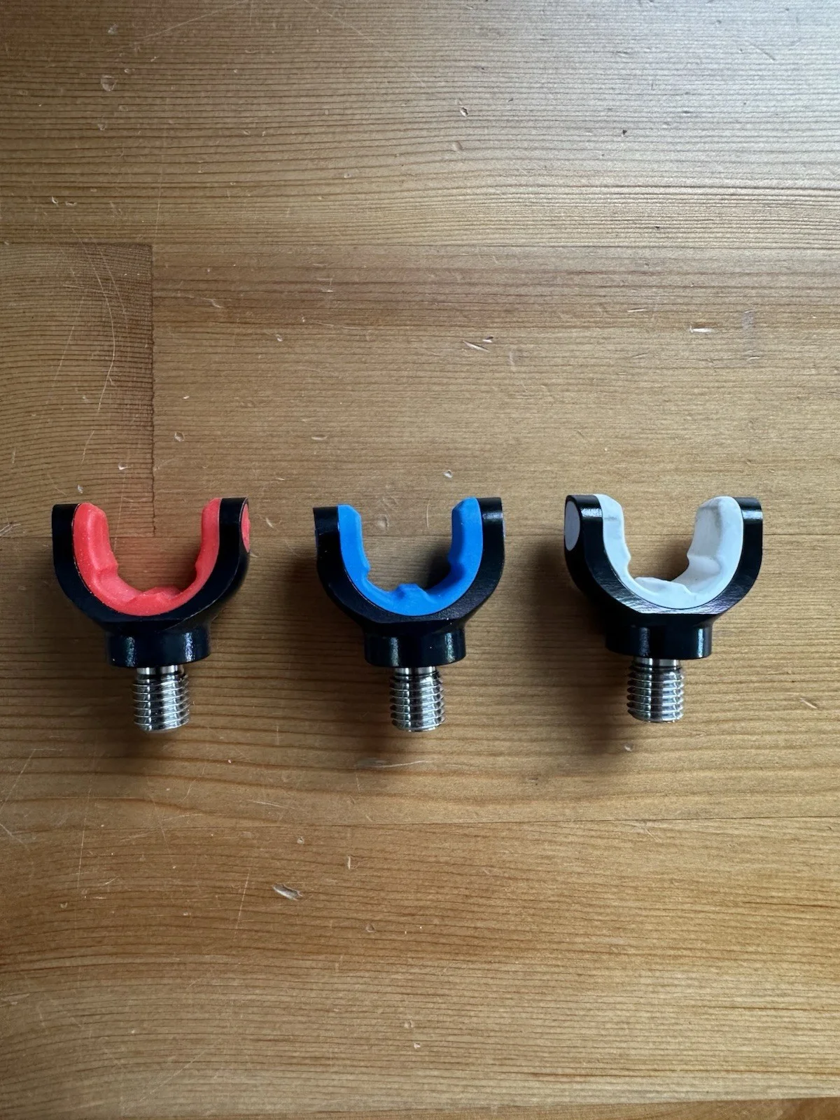 The Jag Lockdown Rear Butt Rest in black with orange inserts is a set of three small rod rests designed for anglers. Made from aluminium, these rod rests provide stability and support for your rods while fishing. The orange inserts add a touch of colour to the black aluminium construction, making them easily identifiable on the water. Perfect for enhancing your fishing experience and ensuring your rods are securely held in place.