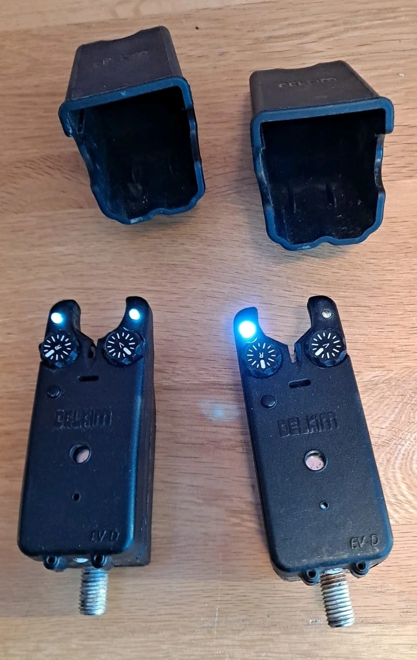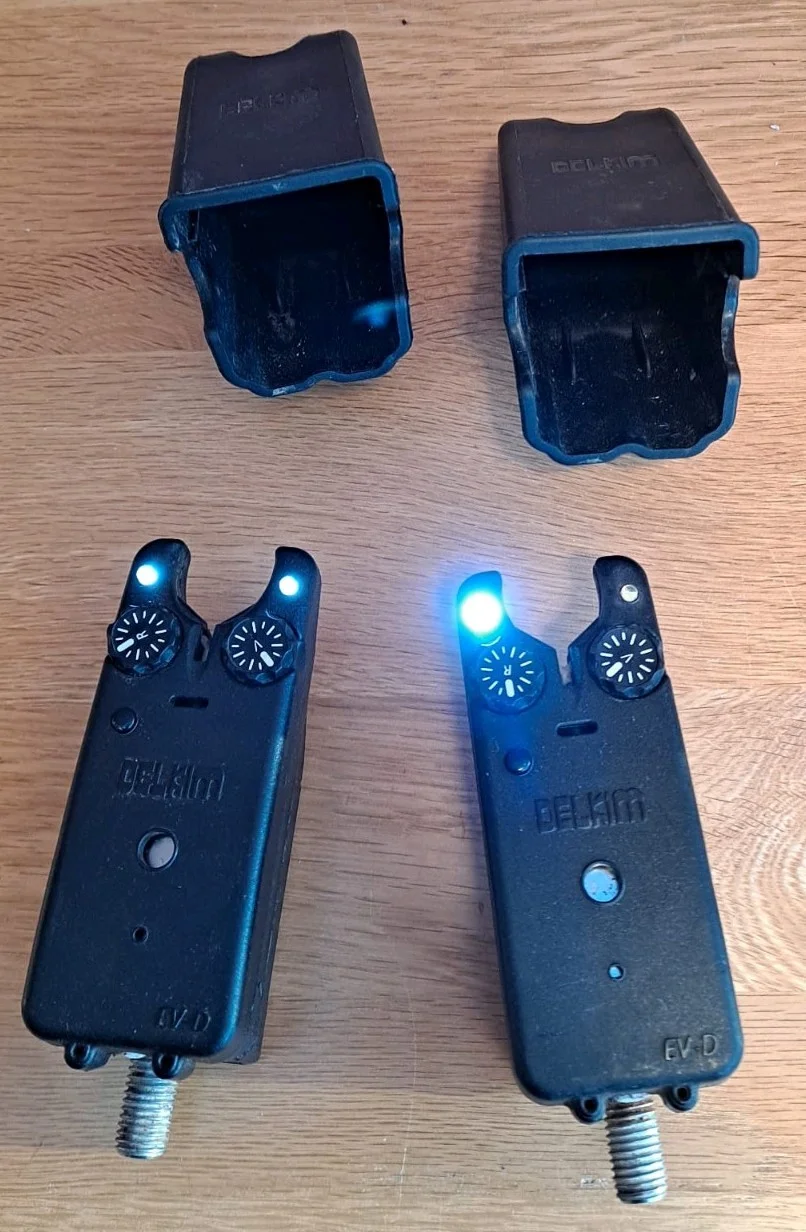 Pair Of Standard Plus Delkim Bite AlarmsSound is great. No marks. one has one led working but does not affect its use, hence the reduced price.