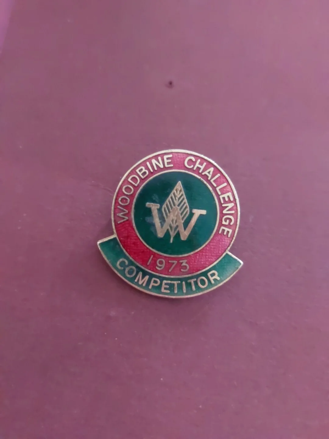 H/A SCARCE VINTAGE WOODBINE CHALLENGE 1975 COMPETITOR FISHING BADGE