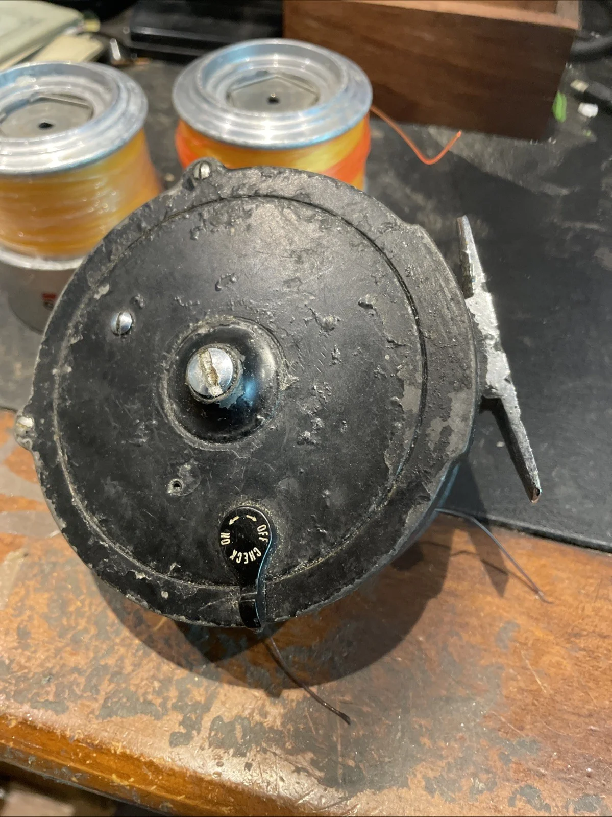This job lot includes a vintage fishing reel, along with two spools from the renowned brand Abu Garcia. Known for their quality and durability, Abu Garcia reels are highly sought after by fishing enthusiasts. The vintage design combined with the reliability of the Abu Garcia brand makes this set a valuable addition to any angler's collection reel a real vintage item well used but functional no makers name says made in Japan clearance items bargain
