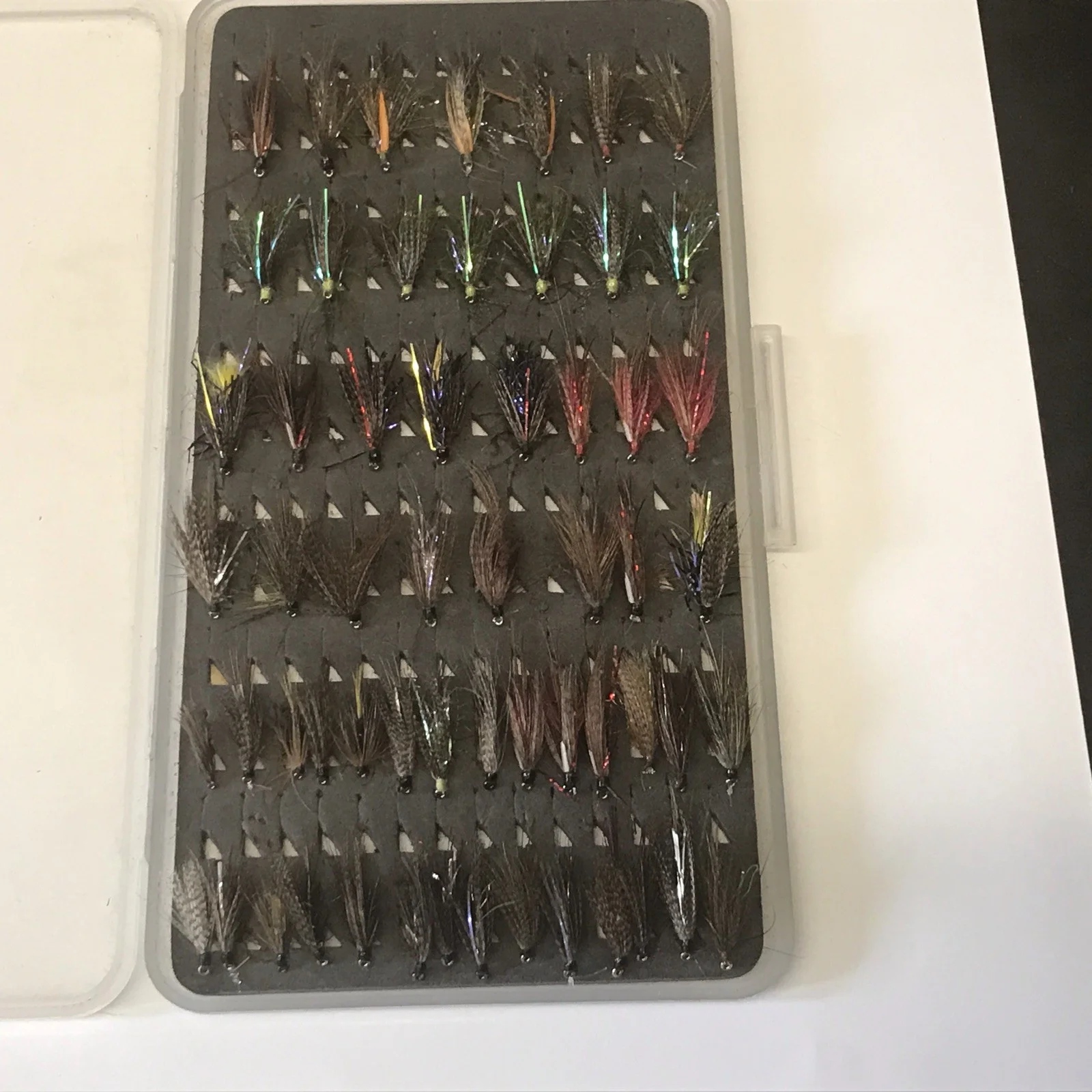 Welcome bidders to my selection of various fly fishing wet flies and slim Jim fly box. Most of these flies have been in my fly fishing bag for some time without being used so it’s time for someone else to catch a few fish on them, all these flies have have been shop brought.Good luck in the auction and thanks for looking.