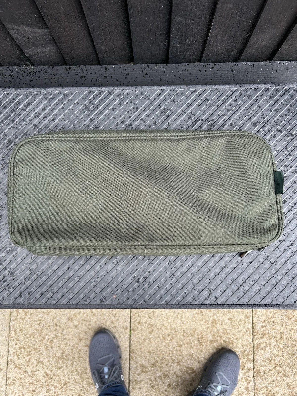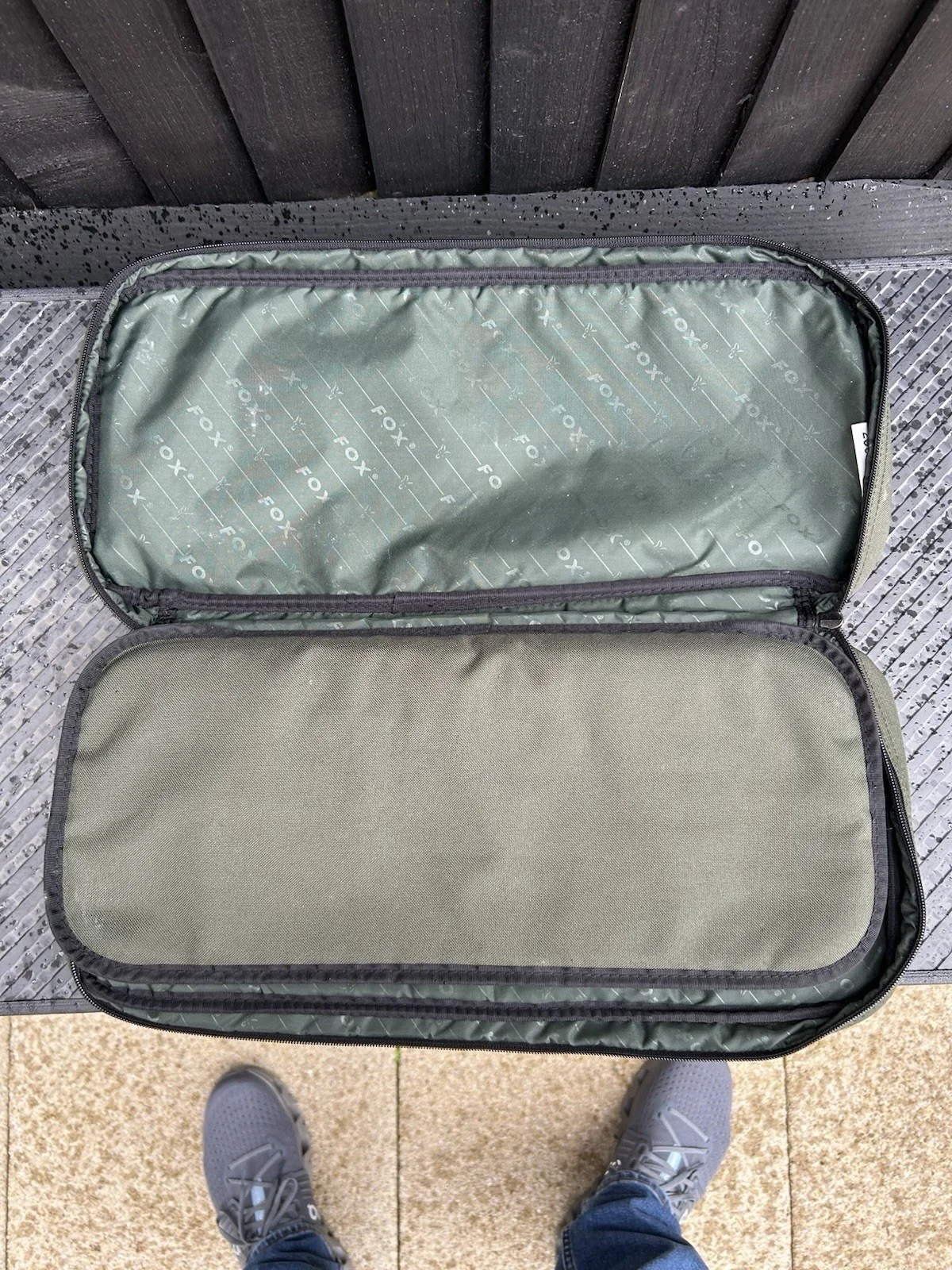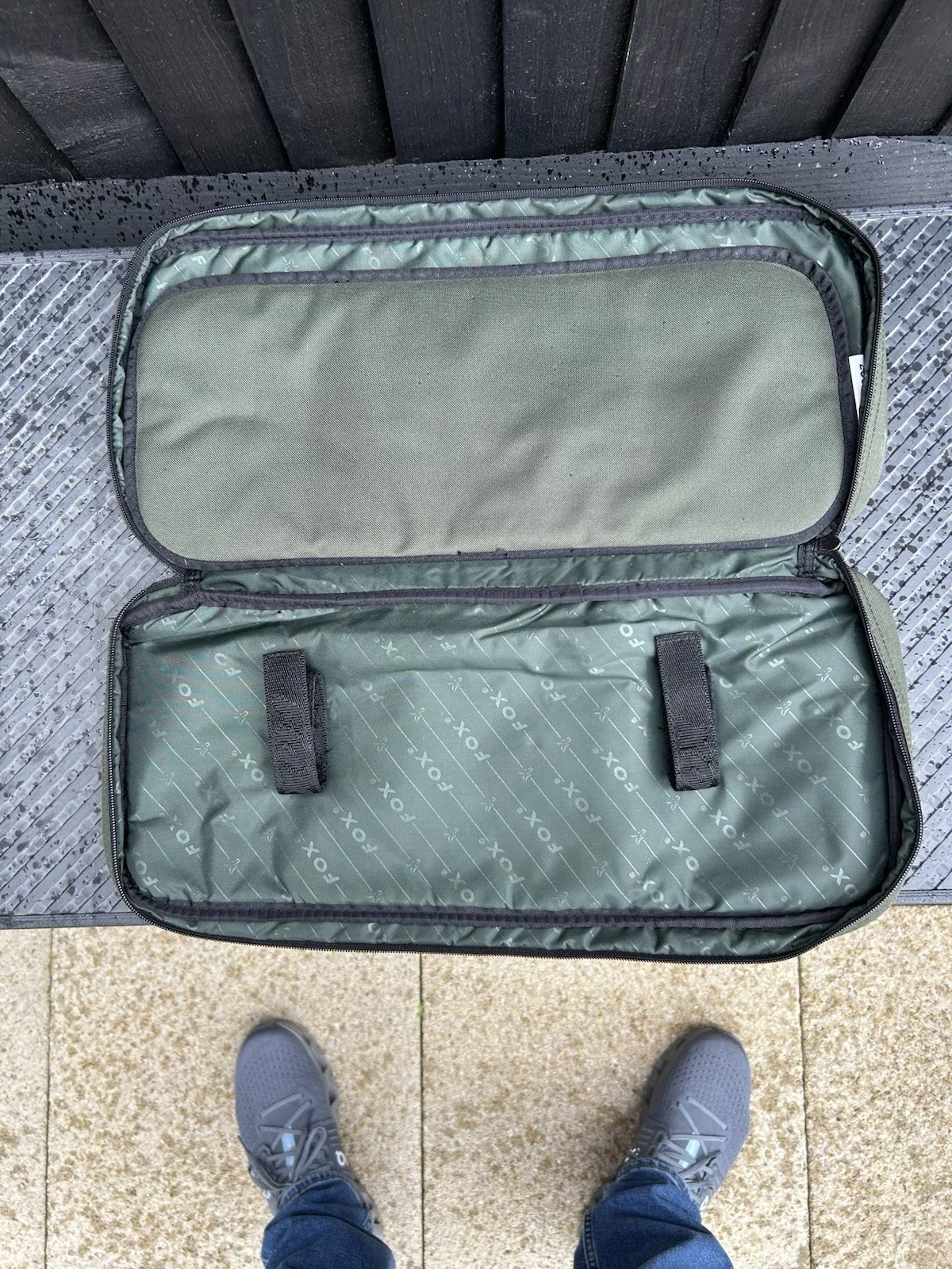 The Fox Buzz Bar Bag is a compact and durable tackle box designed specifically for anglers who prefer to keep their essential fishing equipment organized and easily accessible. Made by the reputable brand Fox, this bag is perfect for storing bespoke rod pod set up with external pockets for storage of other itemsItem is used but in very good condition.