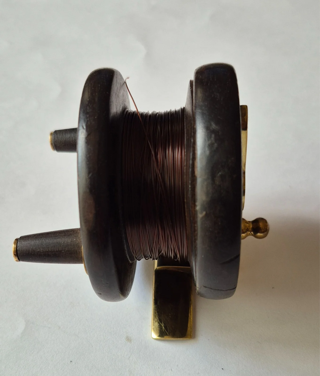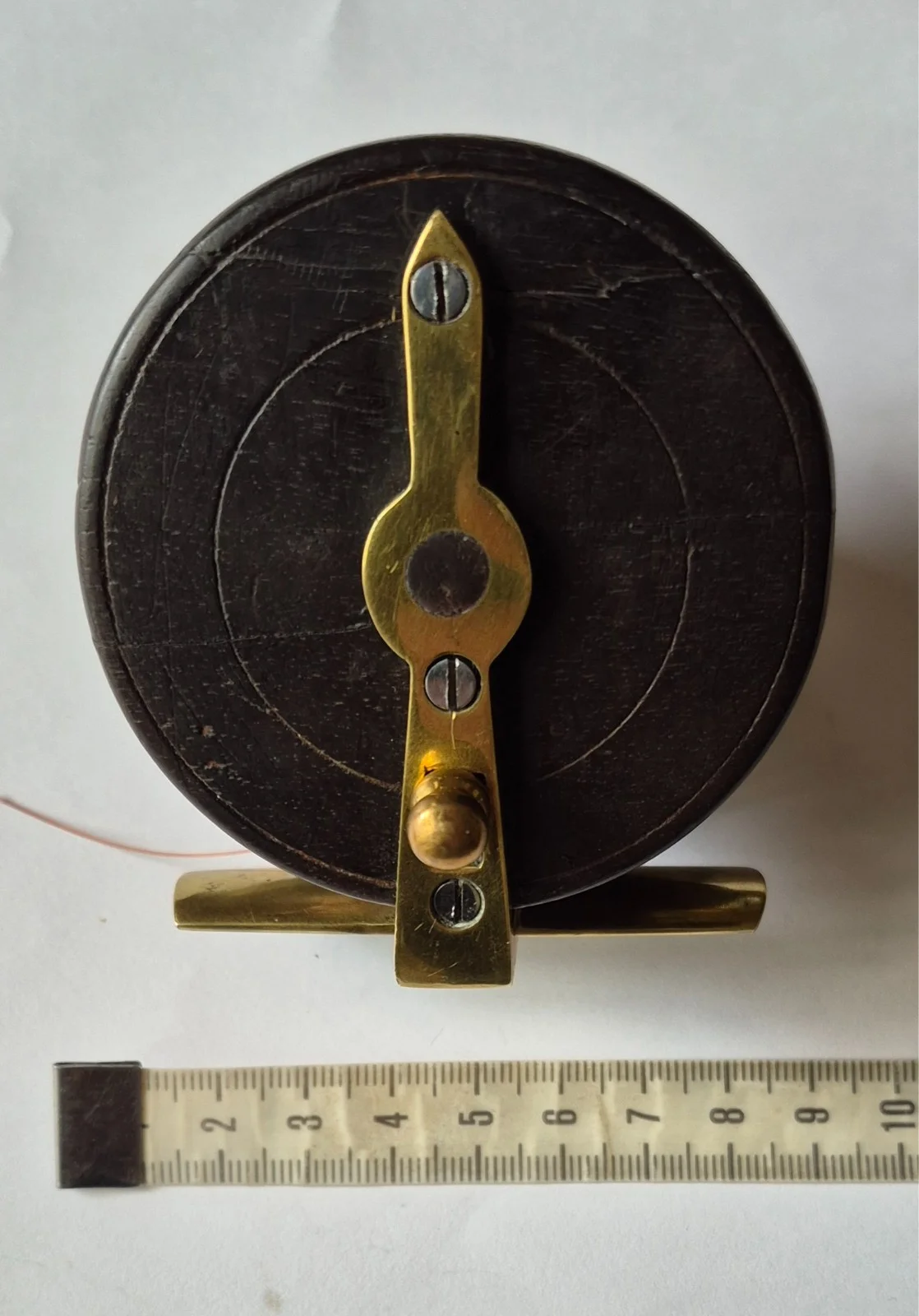VIntage Wood and Brass Fishing Reel make UnkownIn good condition and in fully working order.