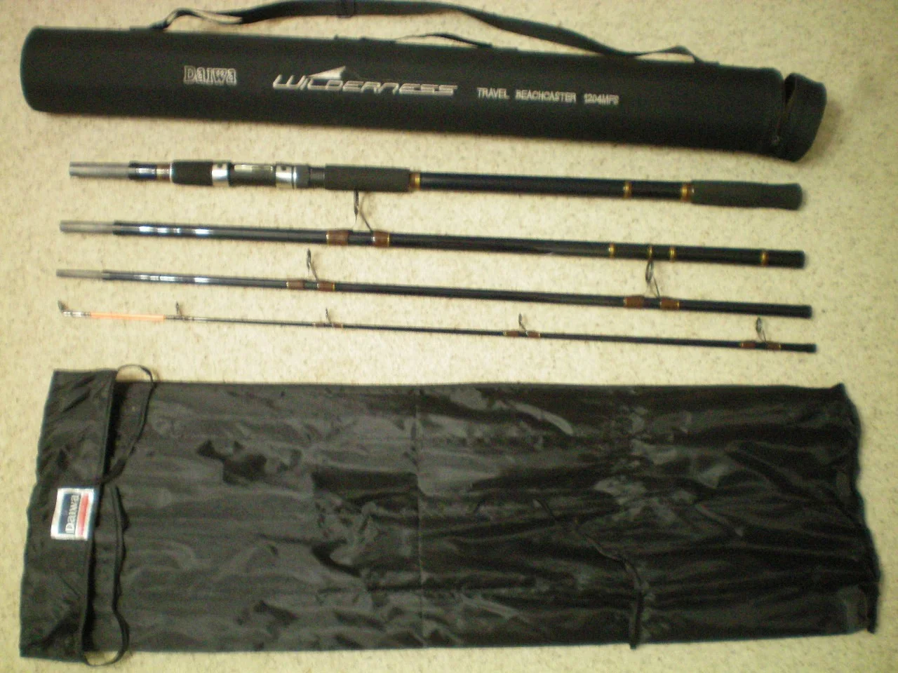 Daiwa Wilderness Travel Beach Caster 1204 MFSModel No WDB 1204 MFS TravelLength 12 ft ( 3.66m )4 PieceCasting Weight 4-8 oz ( 100g - 225g )