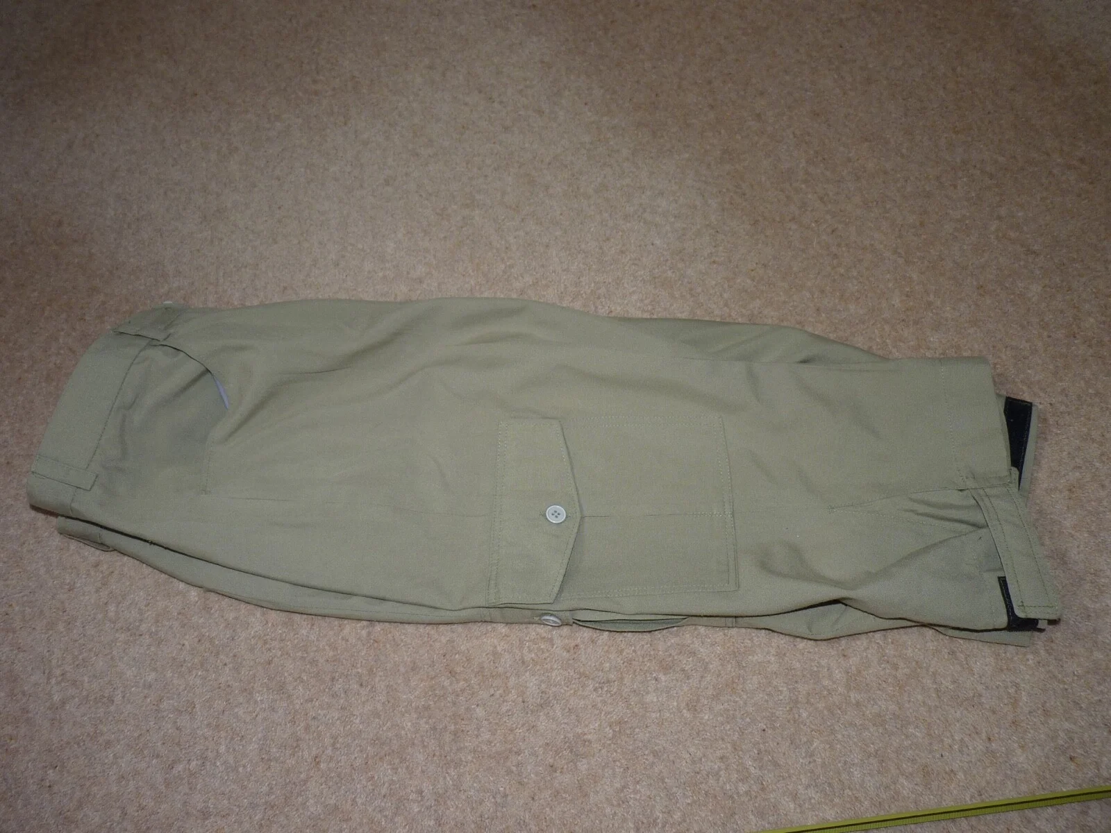 A nice lightly worn pair of cotton lightweight fishing breeks.size is 34w. belt loops, with adjustable velcro fitting to the legs. 2 thigh pockets, with flap and buttoned.Please see the pictures of the sizes.