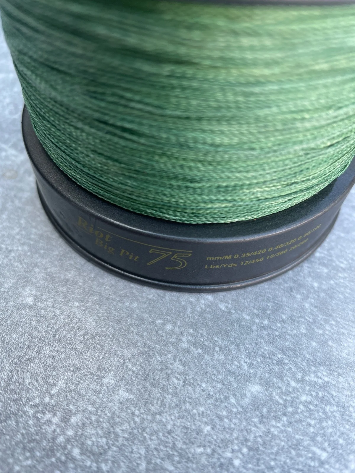A used spare spool for a Wychwood Riot big pit reel , spooled with braided line, not sure what breaking strain the braid is