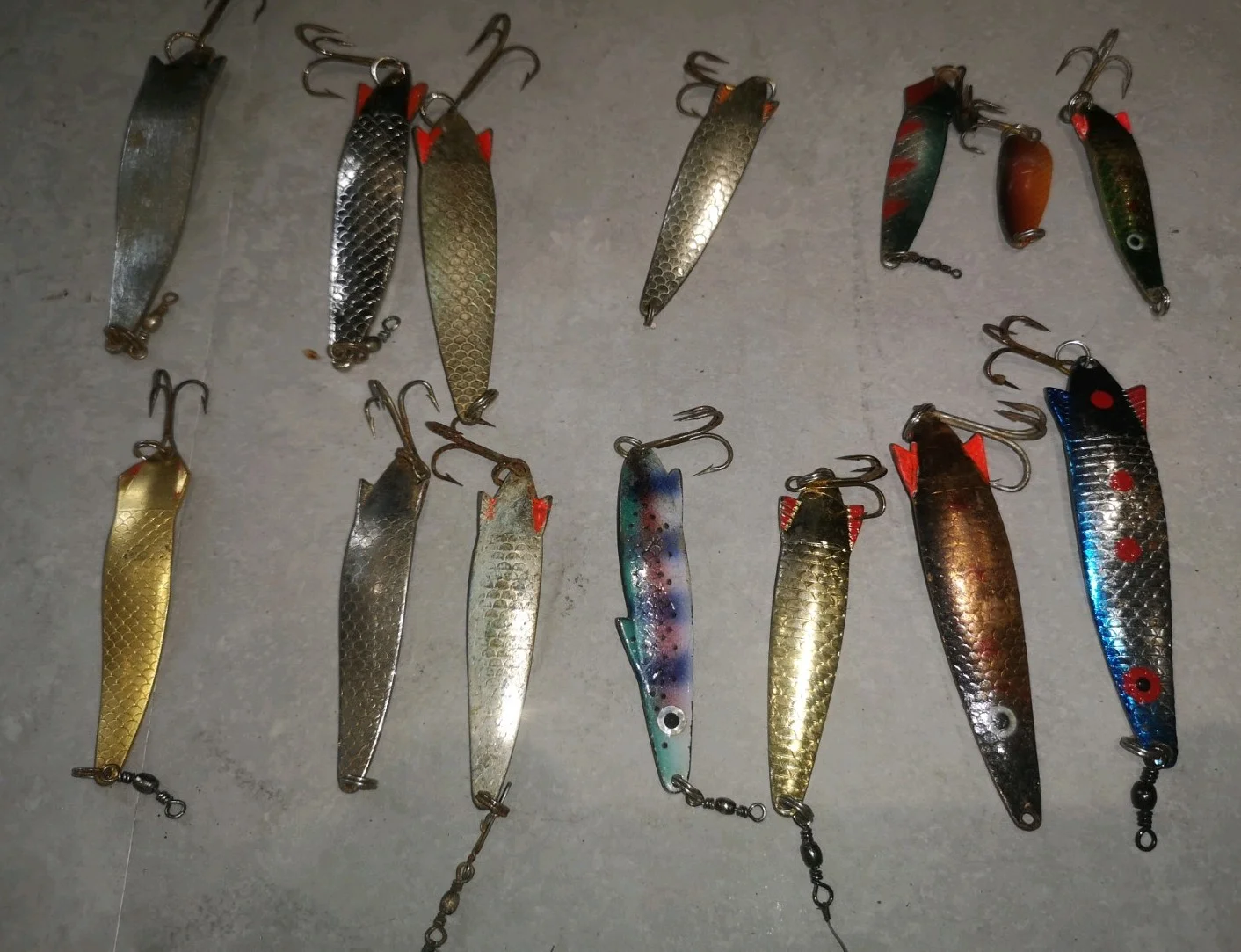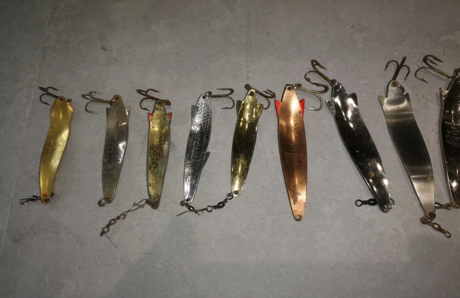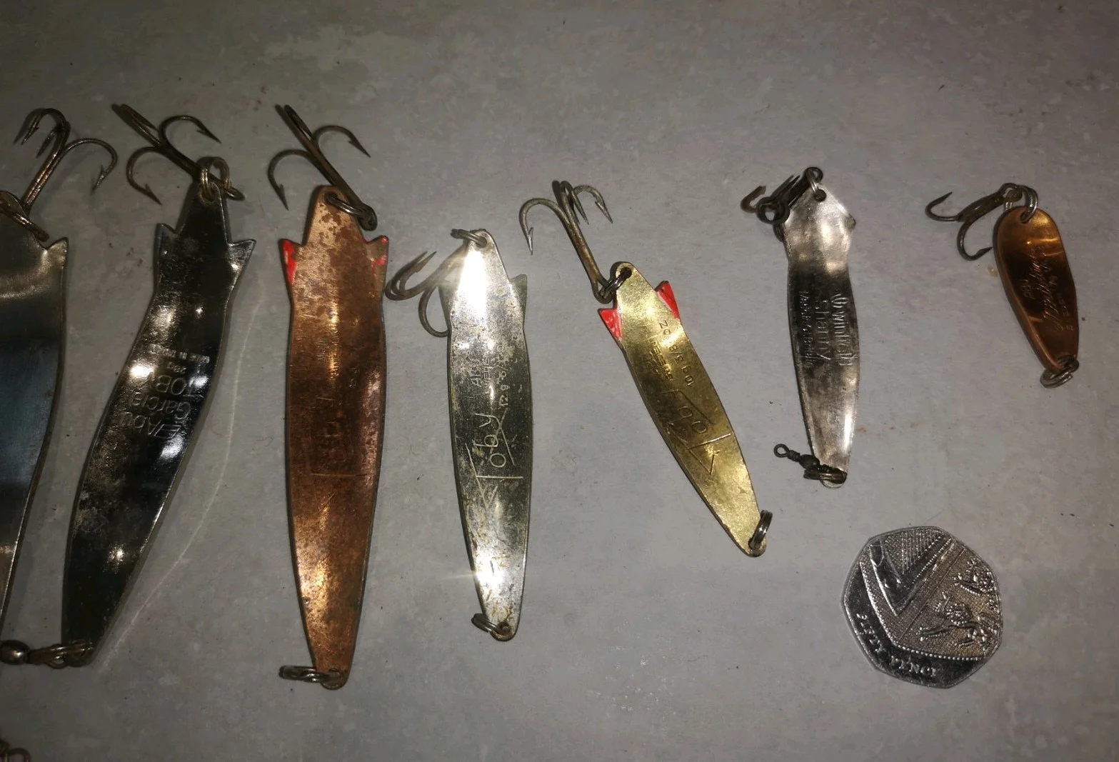 This vintage Mixed Spinners Lot includes a mixed selection of 14 toby lures, perfect for fishing enthusiasts looking to add some retro charm to their tackle collection. Made by various vintage manufacturers these spinners are sure to attract a variety of fish with their classic design. Whether you're a collector or looking to try something new on your next fishing trip, this lot offers a diverse range of options to enhance your fishing experience. Lots more fishing tackle for sale from shed clearance please see photographs for condition and descriptionMost of these were made by ABU