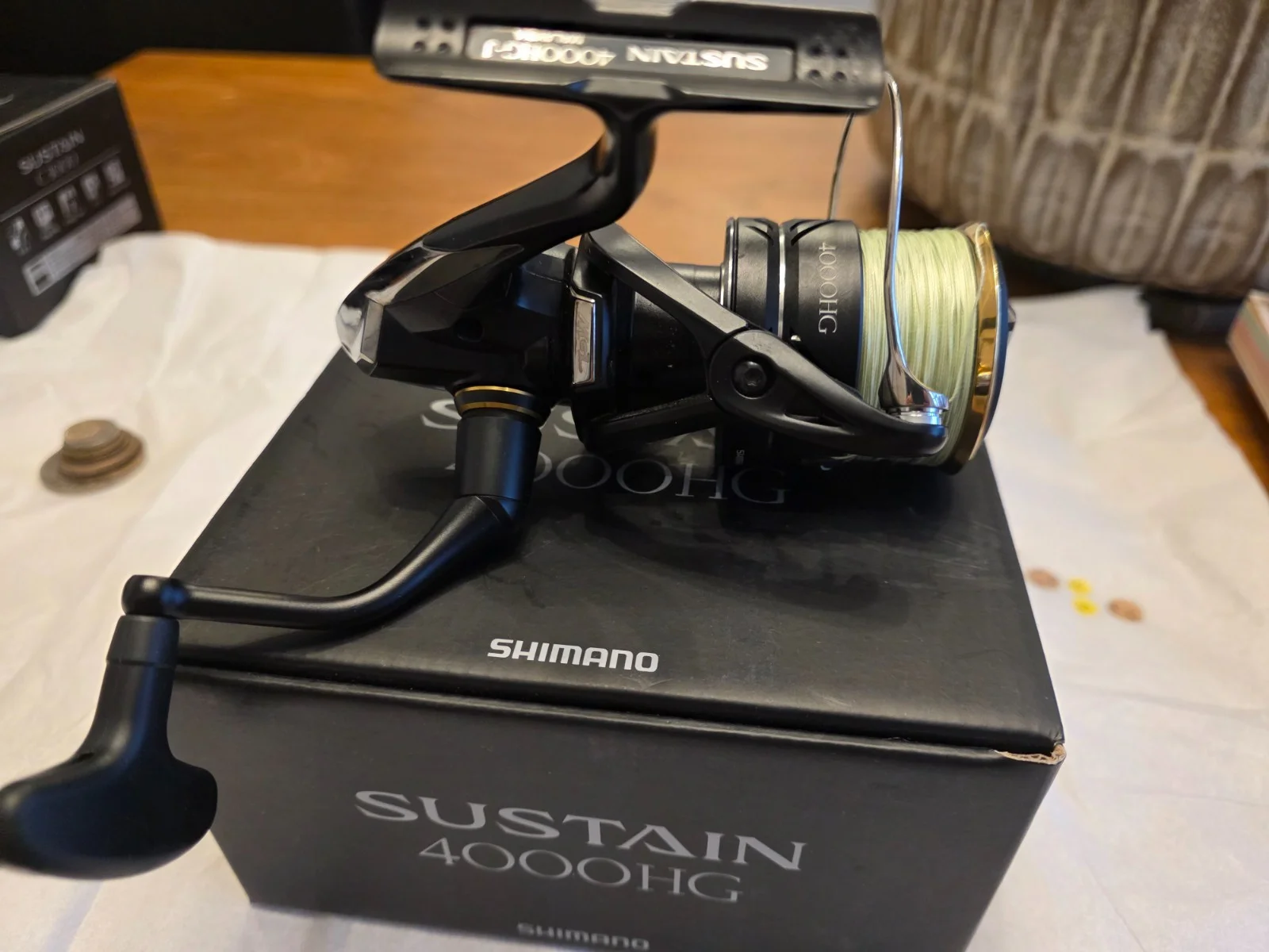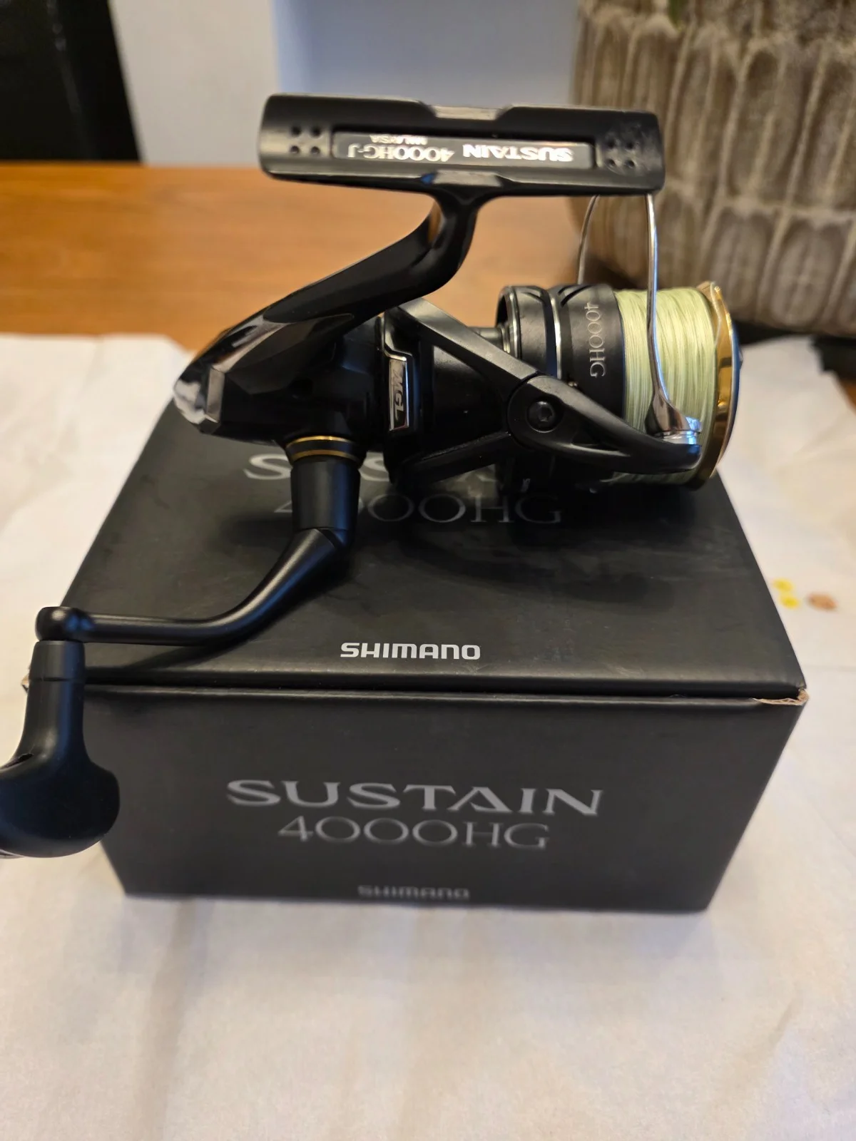 Shimano Sustain 4000HG boxed and in excellent condition. Not used much and in excellent condition. Spooled with J-Braid 0.24mm if I recall. Braid is still in good condition and can definitely go some more or alternatively and respool on backwards for a fresh lease on life.