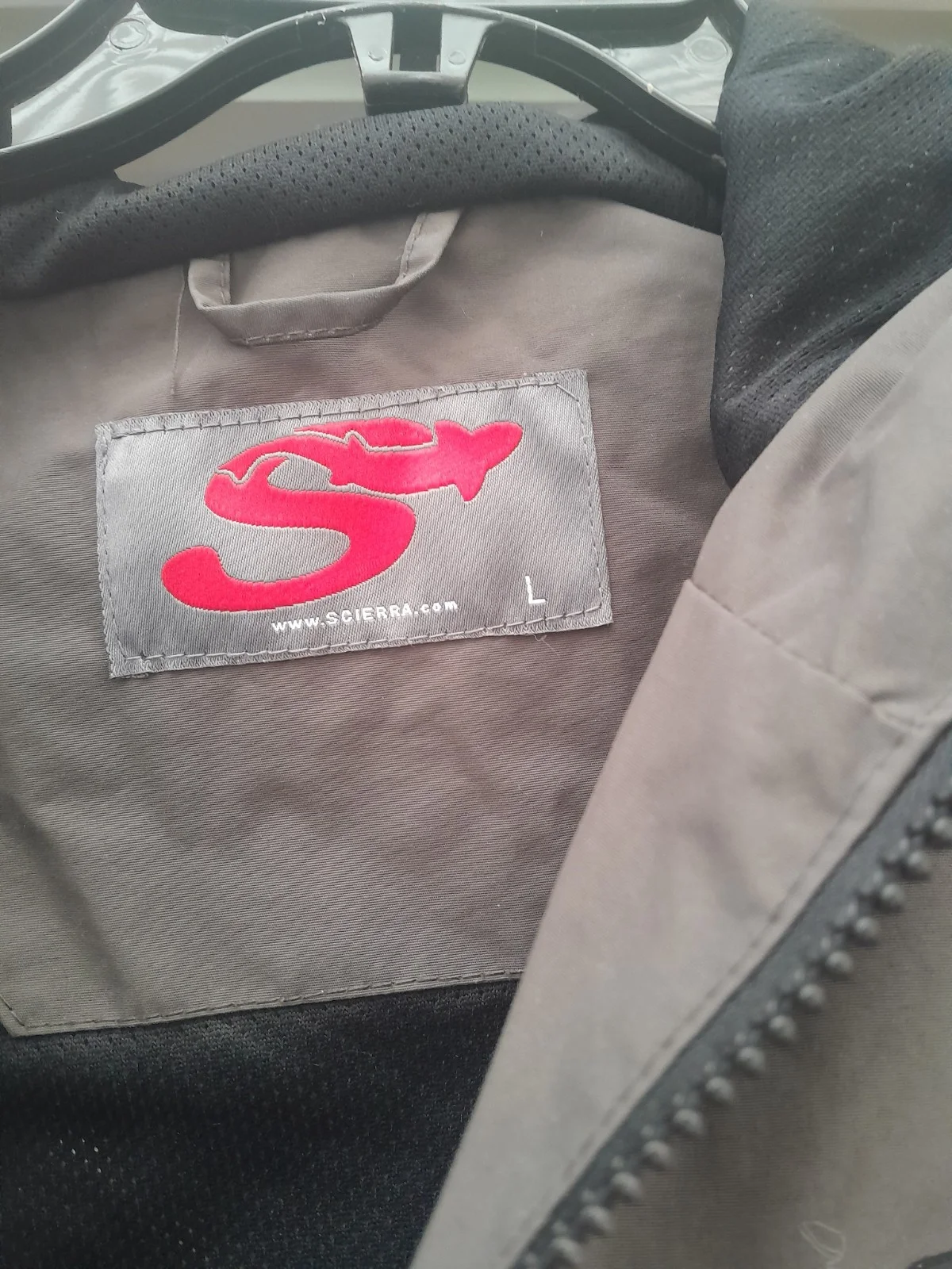 Scierra bank/boat/wading fly fishing jacket. Two good sized fly box pockets, fleece lined hand warmer pockets, hip pockets and an inside pocket. Cuff adjusters with a non-line-fouling design. Pit-to-pit width 24 inches (chest 48 inches), back length 29 inches. This is the manufacturer's description:"The Helmsdale Fishing Jacket in classic colours – made for the unpredictable weather an angler often encounters. Designed for anything from fishing from the boat to hiking the mountains.2-layer Wading jacket with membrane 8.000/5.000mvp100% Nylon Taslon fabric with thick PU coatingMesh lining in 100% polyesterTAP – Tool Attachment Point for plier and nipperLarge chest pocketsHandwarmer pocketsStorm hoodAdjustable cuffsAdjustable hem"