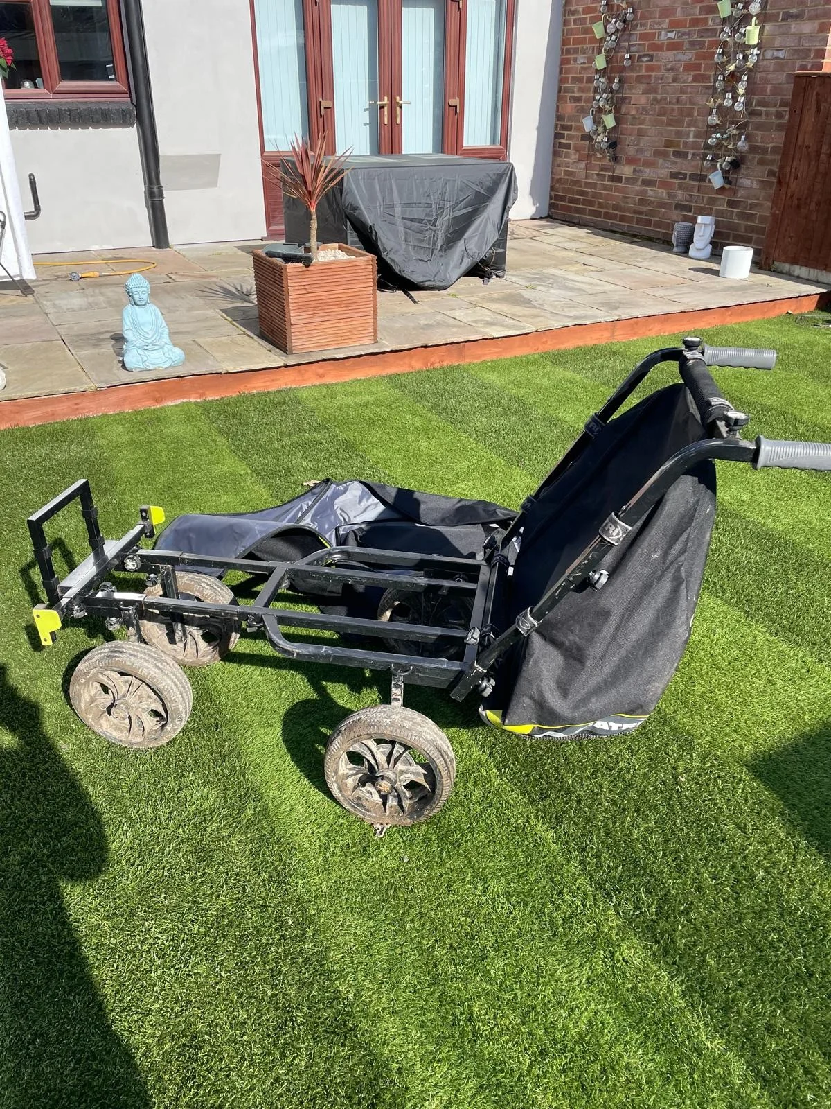 MATRIX 4 Wheel Transporter Barrow...Great Condition...Designed to transport all your essential angling equipment...Best fishing trolley & a must-have for every serious angler...The MATRIX transporter comes in a durable storage bag, with dimensions of L75cm x W60cm x H25cm...The frame is designed to compress into a compact size, making it easy to store in a garage or shed...Assemblyof the Matrix 4 Wheel Transporter is Simple...With an Extending frame it can be adjusted to suit the amount of tackle you need to transport...Ranging from 75cm to 100cm...Key feature of the Matrix Transporter is the unique Seatbox locking system preventing any movement or sliding of your seatbox...Height-adjustable handles can be set between 88cm and 100cm...Ergonomic rubber handles are easy on your hands, allowing you to manoeuvre the transporter with minimal effort...Rear waterproof storage bag, complete with a zipped lid and drainage base, provides additional storage for any wet or damp items, such as clothing, towels or bait...Solid tyres that are resistant to punctures...Excellent on flat or rough and uneven terrain...Cost £229-99 New Grab a BARGAIN. ***** COLLECTION From DA7 - Barnehurst, Kent *****
