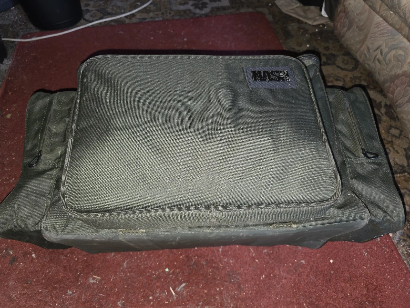 large nash tackle bag.2 large side pockets, 1 front pocket for tackle boxes. spacious main body. mesh pocket in top for tickets, keys, wallet etc.all zips in great working order.selling as down sizing.
