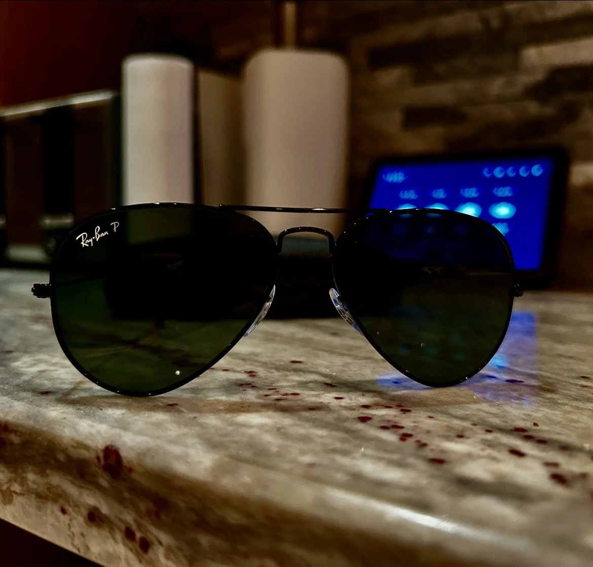 REAL and AUTHENTIC Rayban Aviator polarised sunglasses in black - RRP £202 !!