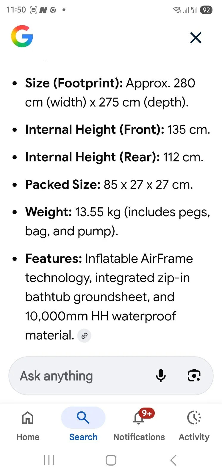 Kampa Blow Up Bivvy Complete Zip In Groundsheet Ideal Good And Sturdy