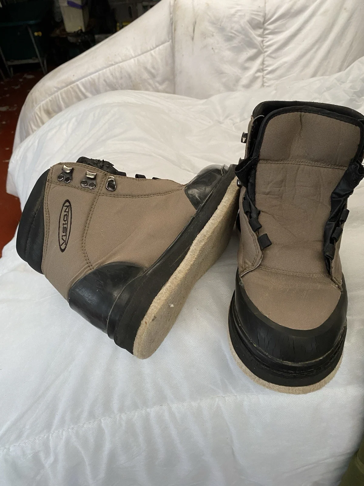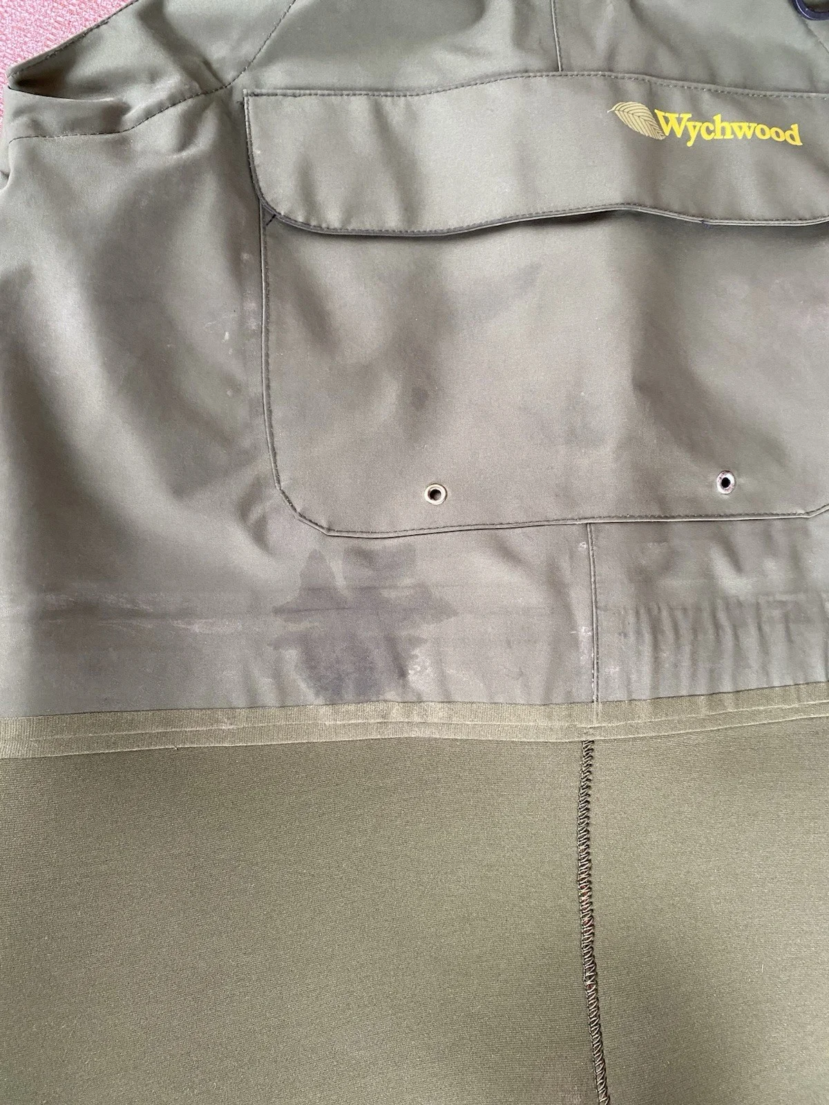 apart from slight stain on front of waders (picture shows ) the waders and boots are in very good condition