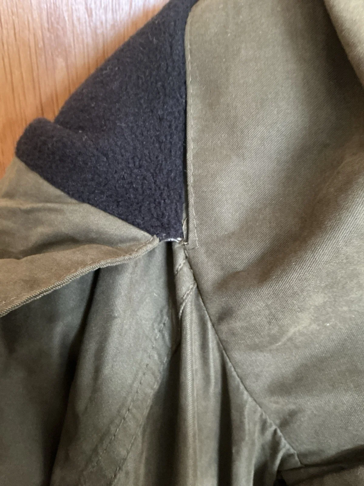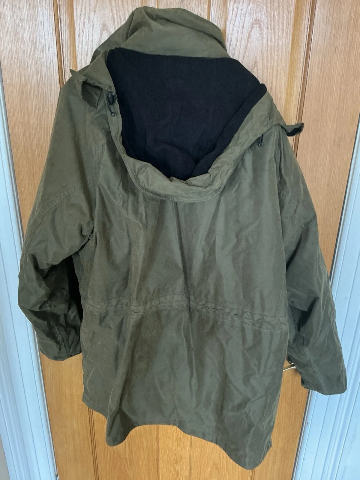 Pro Logic Wilderness Pro fishing jacket XL with removable fleece lining. Some strain on the stitching on either side of the hood - see pics. One of the tabs to connect the cuff of the fleece to the cuff of the jacket has come off (still attached to the fleece, however) see pics.In good used condition.