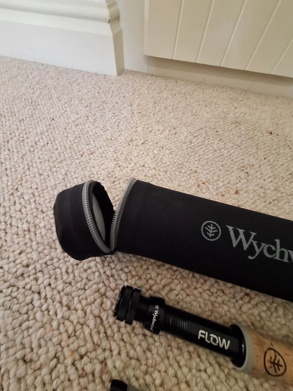 9ft 6inch wychwood flow 7# in excellent condition.must point out the zip has broken on the storage tube. But outher than that the rod is perfect.