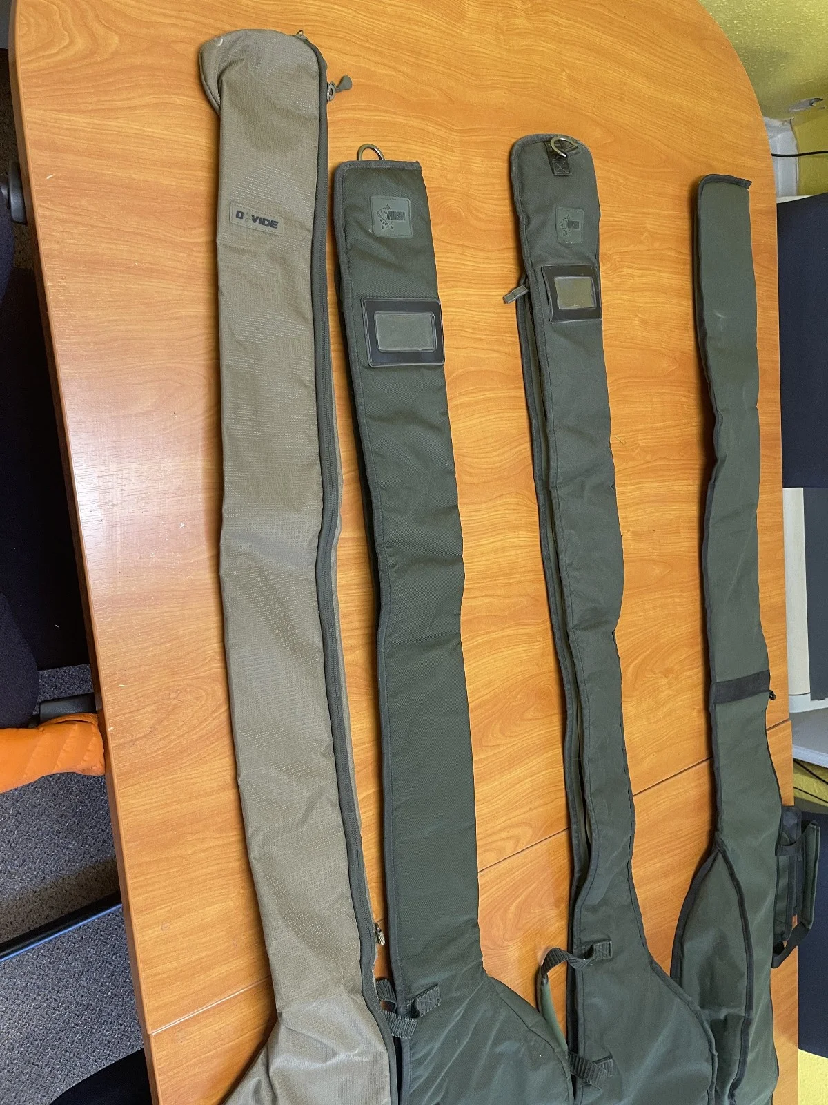 4 rod sleeves, 2 x Kevin Nash (padded) 1 x FishRite (padded) x Korda Connect (new and unused) keep your expensive rods safe with these rod sleeves for 12' rods, all zips work as they should and all in excellent condition...Would prefer collection but will post at buyers cost