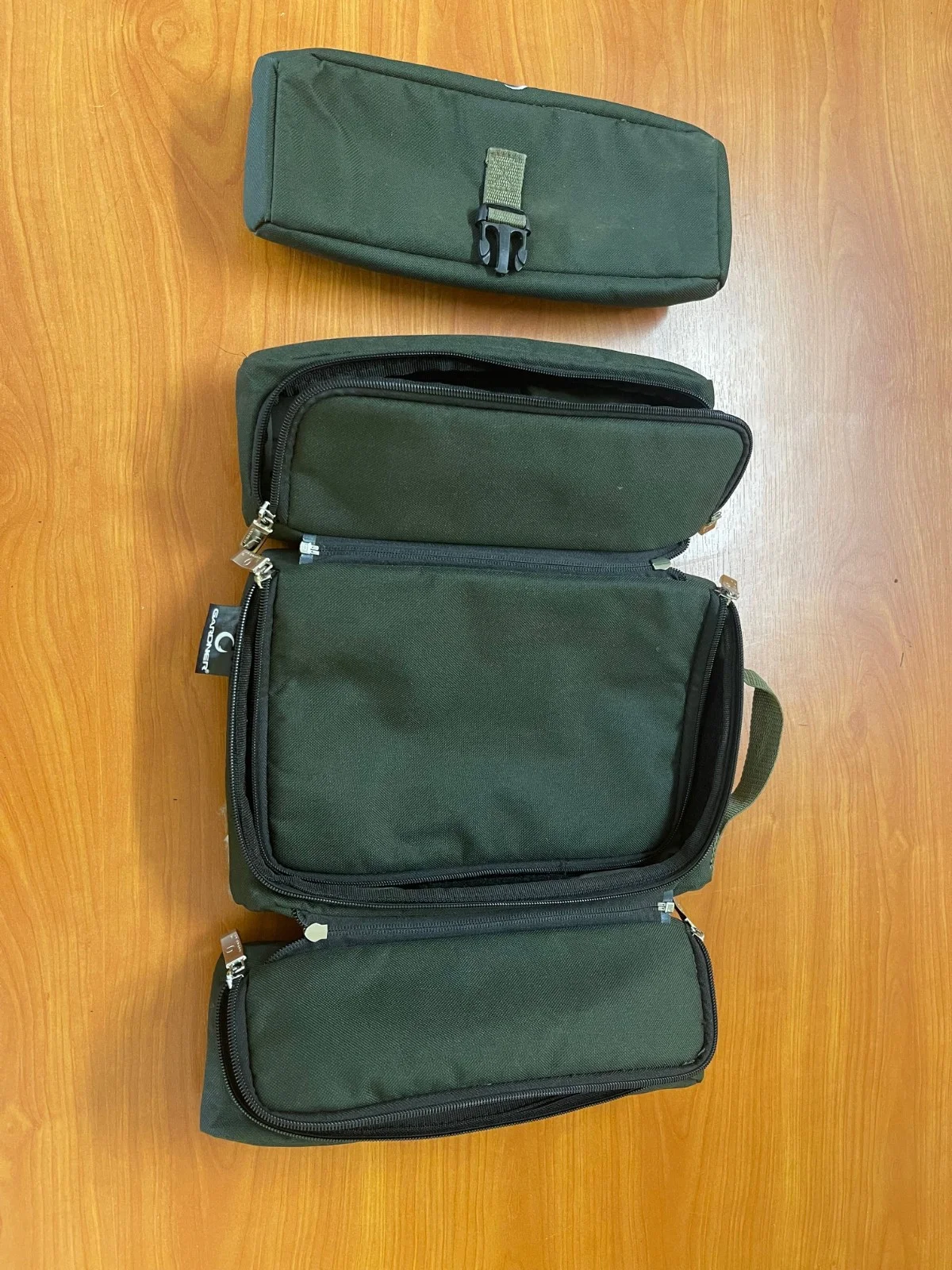 Modular Tackle System - The Modular Tackle System (MTS) comprises three inter-connecting padded pouches that can be used for safely transporting anything from key terminal tackle to leads and other angling essentials like buzzers, buzzer bars, short banksticks and accessories.The MTS pouches can be used as a set – clipped and zipped together – or separated as individual units when travelling light. The system comprises a large padded base, plus two removable padded pouches. Each padded top pouch has slightly different internal features (loops or divider).Tough, heavy duty, waterproof and rot resistant 600D Polyester material.Base pouch features a versatile padded divider (Velcro attachment).Heavy duty waterproof PVC bottom on base unit (easy wipe/clean).High quality zips throughout and strong webbing style handle on base.The Modular Tackle System Dimensions:Overall system external dimensions: 30cm x 22cm x 13cmBase pouch dimensions: 30cm x 22cm x 6.5cmTop pouch (2) dimensions: 30cm x 11cm x 6.5cmThis is a top bit of kit, but new venue and barrowing means that I need to get everything in my rucksack - £30 RRP