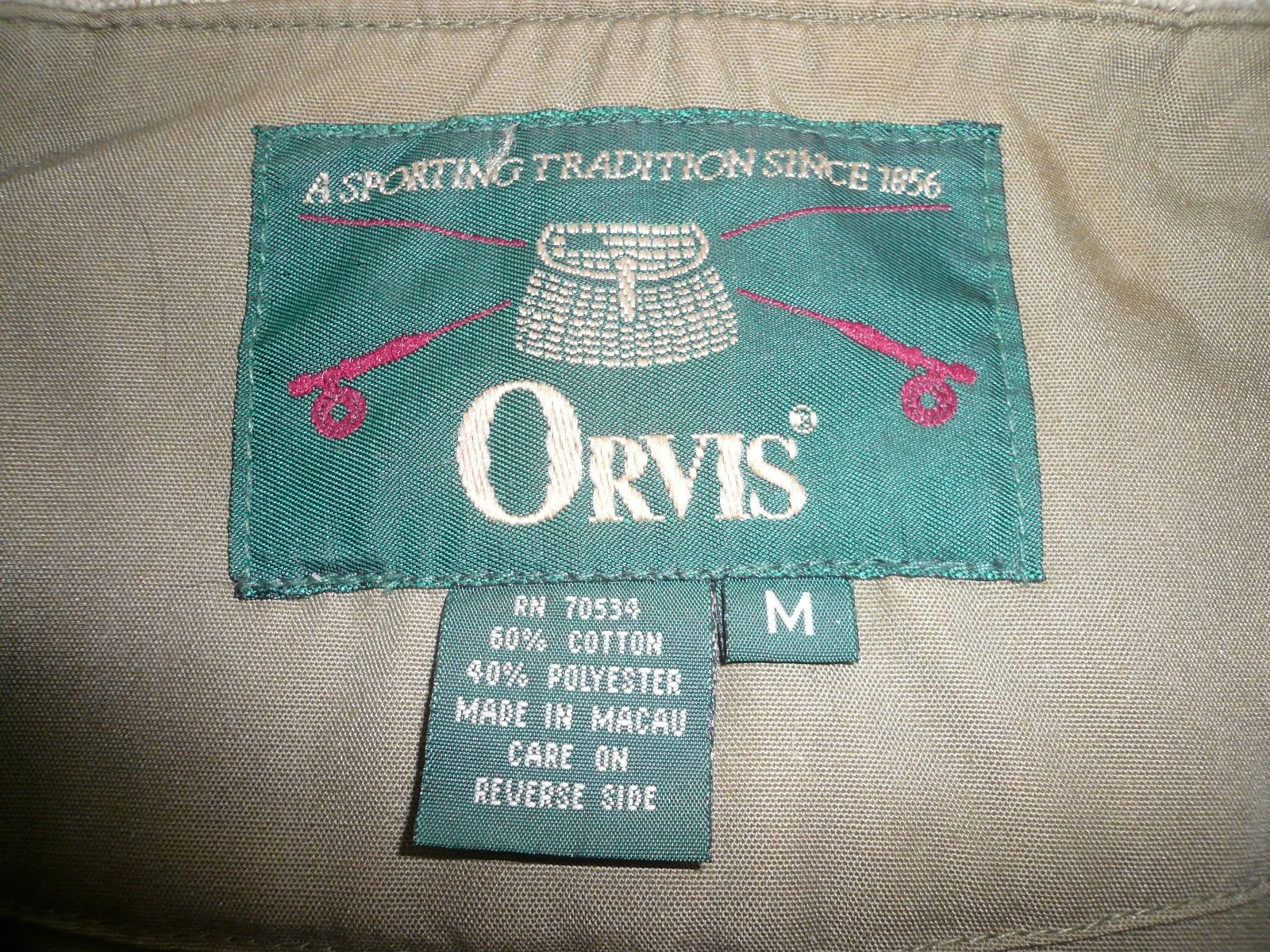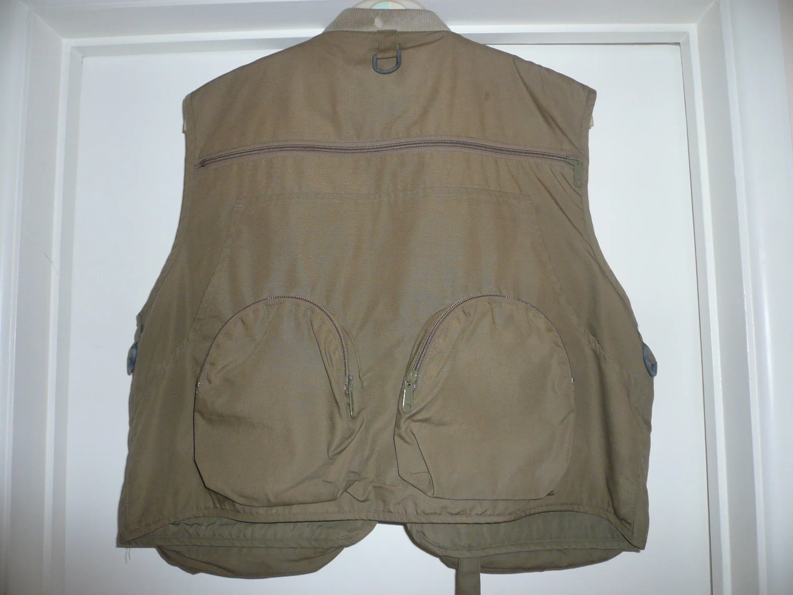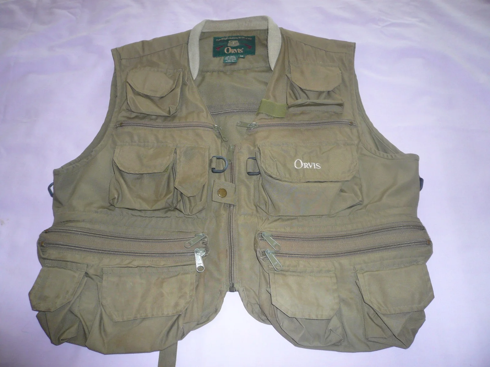 Orvis Classic Fly Fishing Gillet/Vest. Men's size Medium. Colour Khaki. Zipped Front Fastening.This has had very little use and is in very good condition.It has multiple pockets for storage whilst fishing, hiking, etc. All pockets are zipped or have velcro fastening. Zips are in perfect working order as is the velcro.