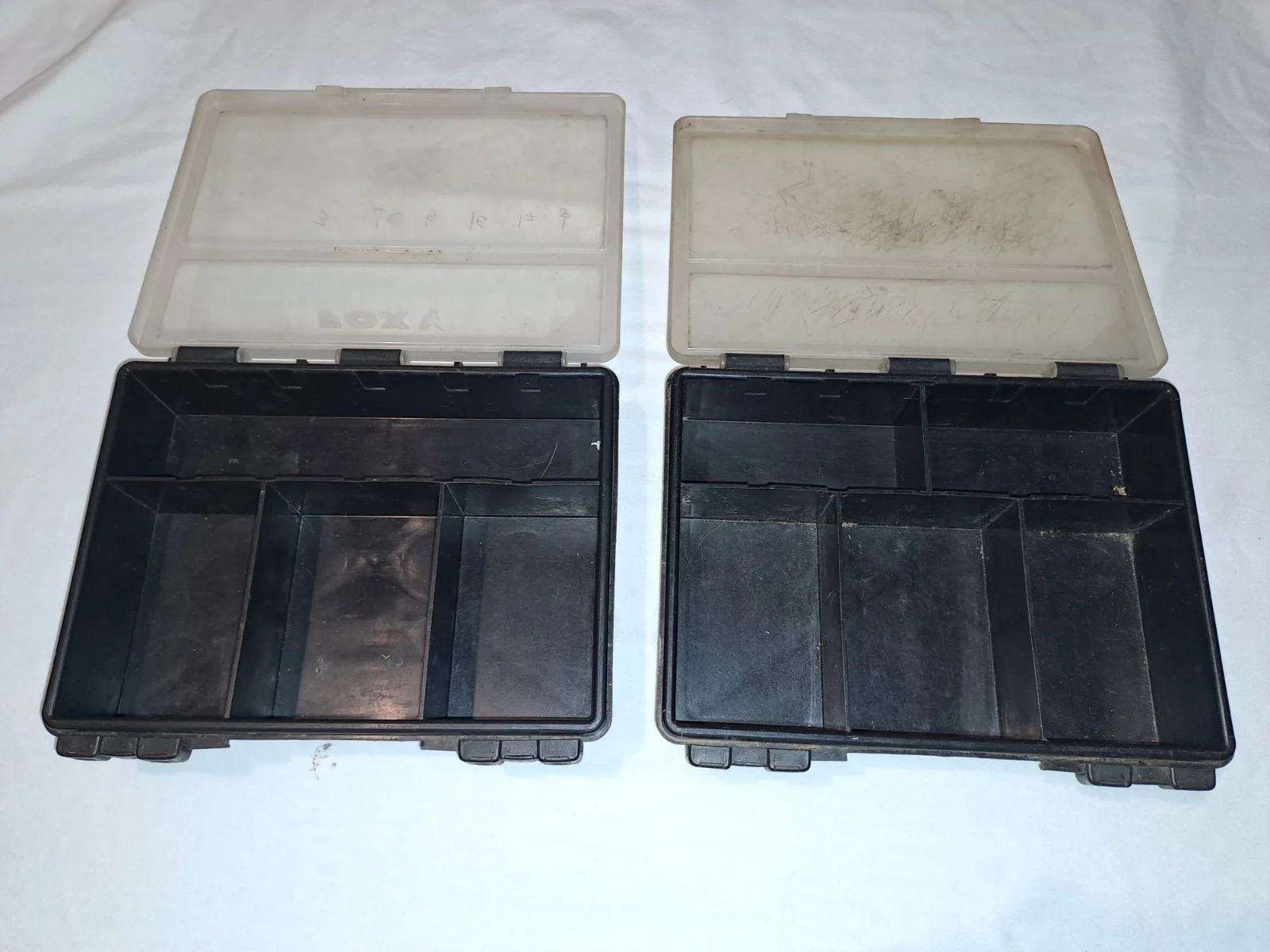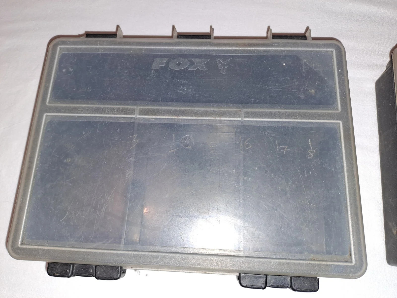 x2 old fox tackle boxes, well used but clips in tact and all working, will do someone a turn.dispatched with royal mail
