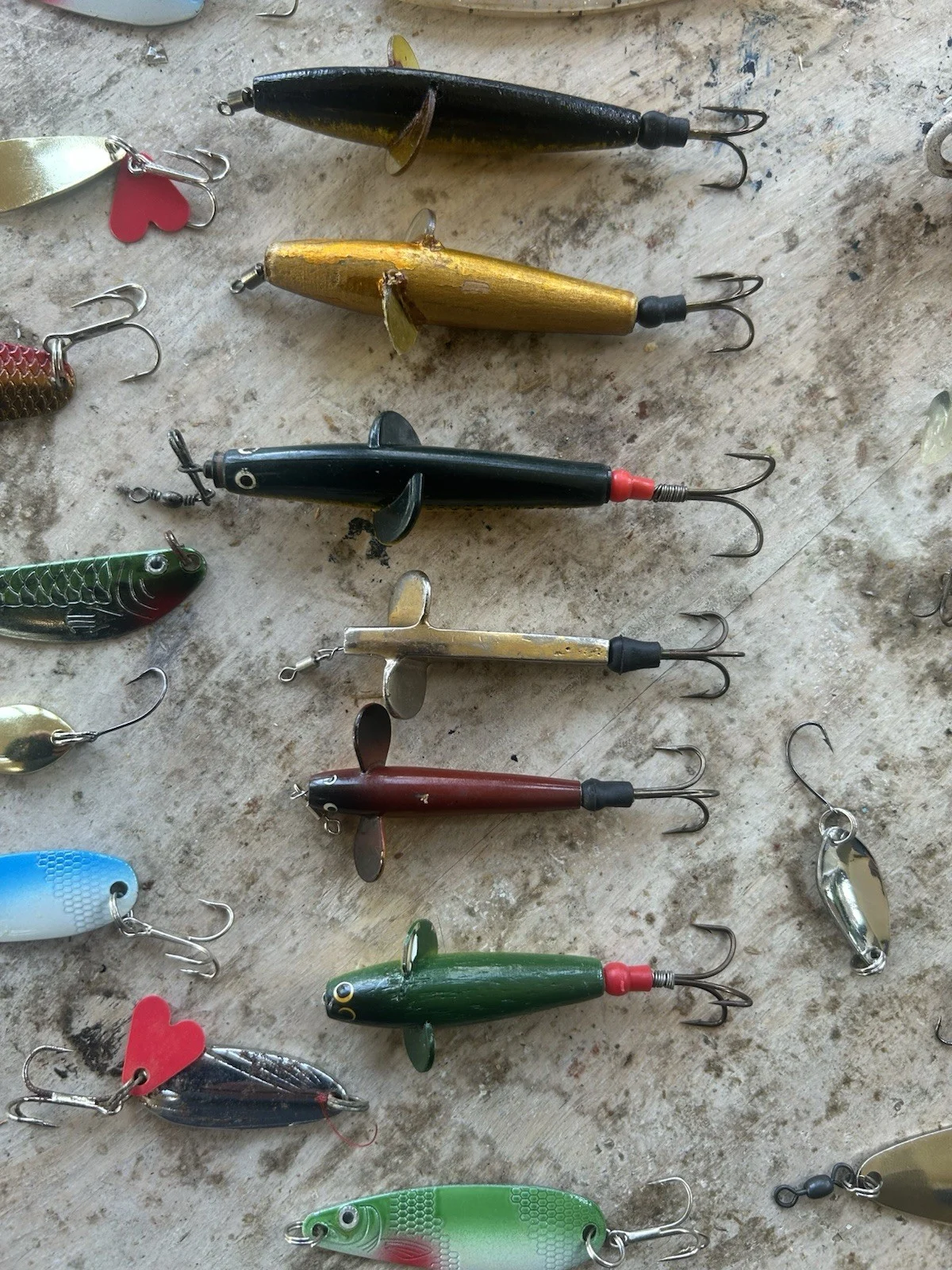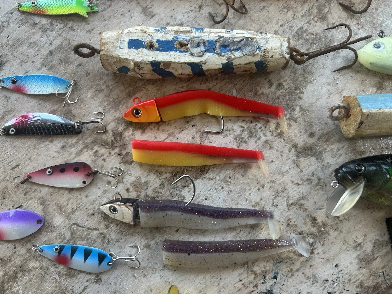 A large Joblot of over 50 mixed fishing lures.SpoonsFloatingShallow divingWoodenMetalLarge Storm luresWeedlessSoft plasticsDevon minnowsPaddle tails RattlersEtcSome newSome used Photographs form part of the description.