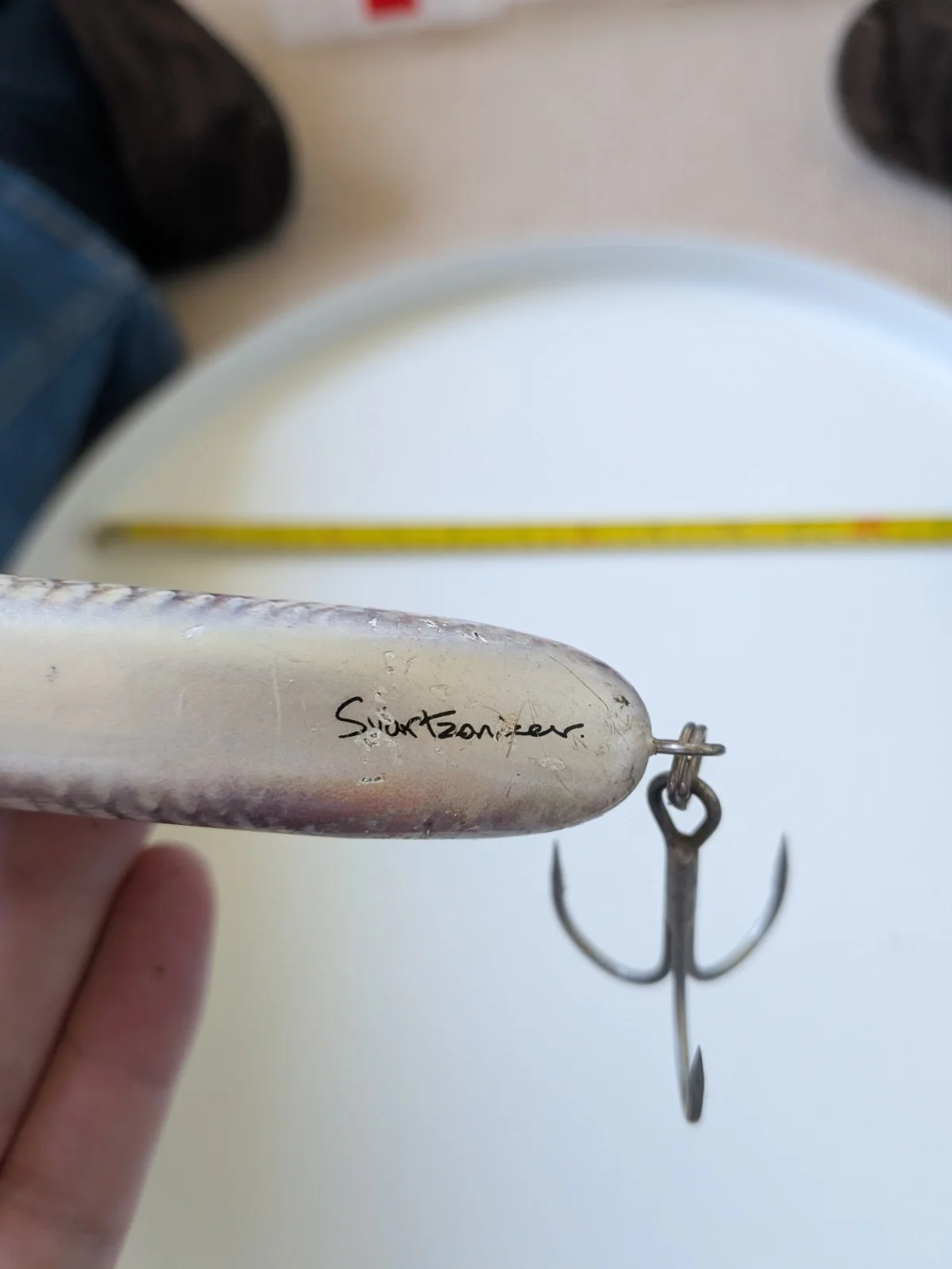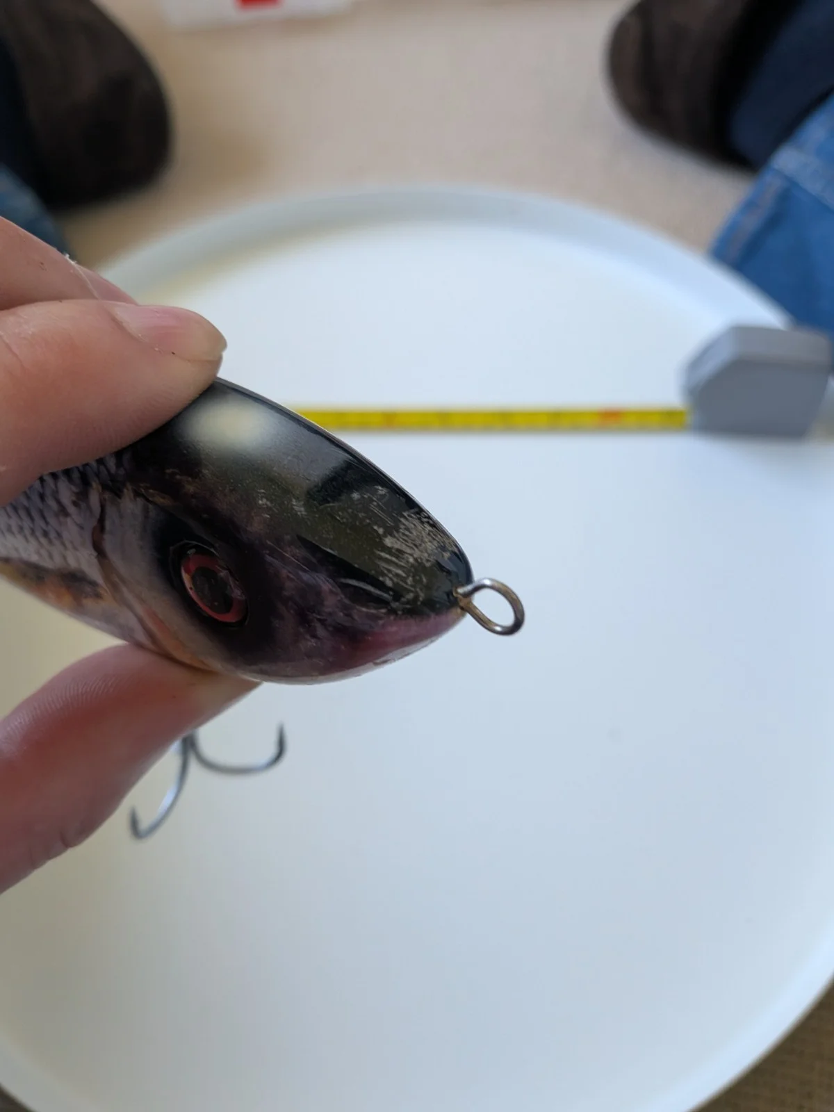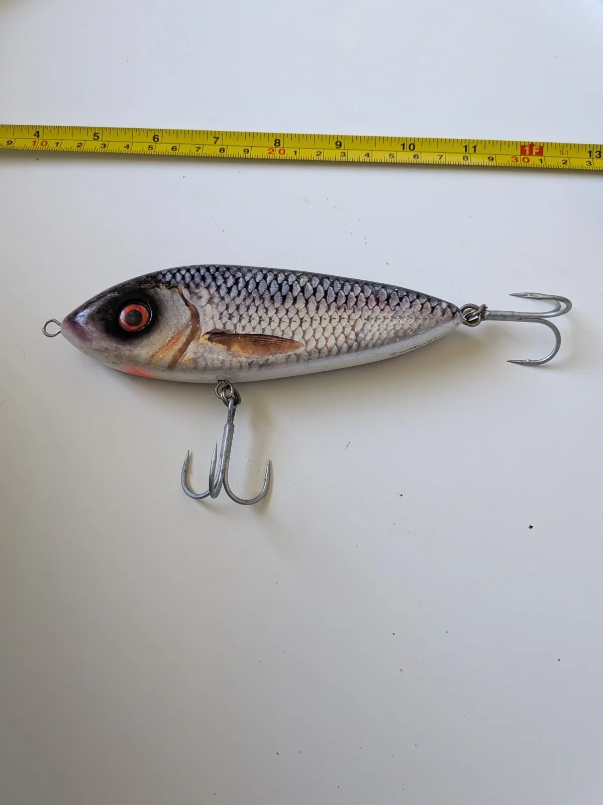 Great lure, with loud rattle. Has some teeth marks and other signs of wear (see photos) but still catches well and loads of life left in it.