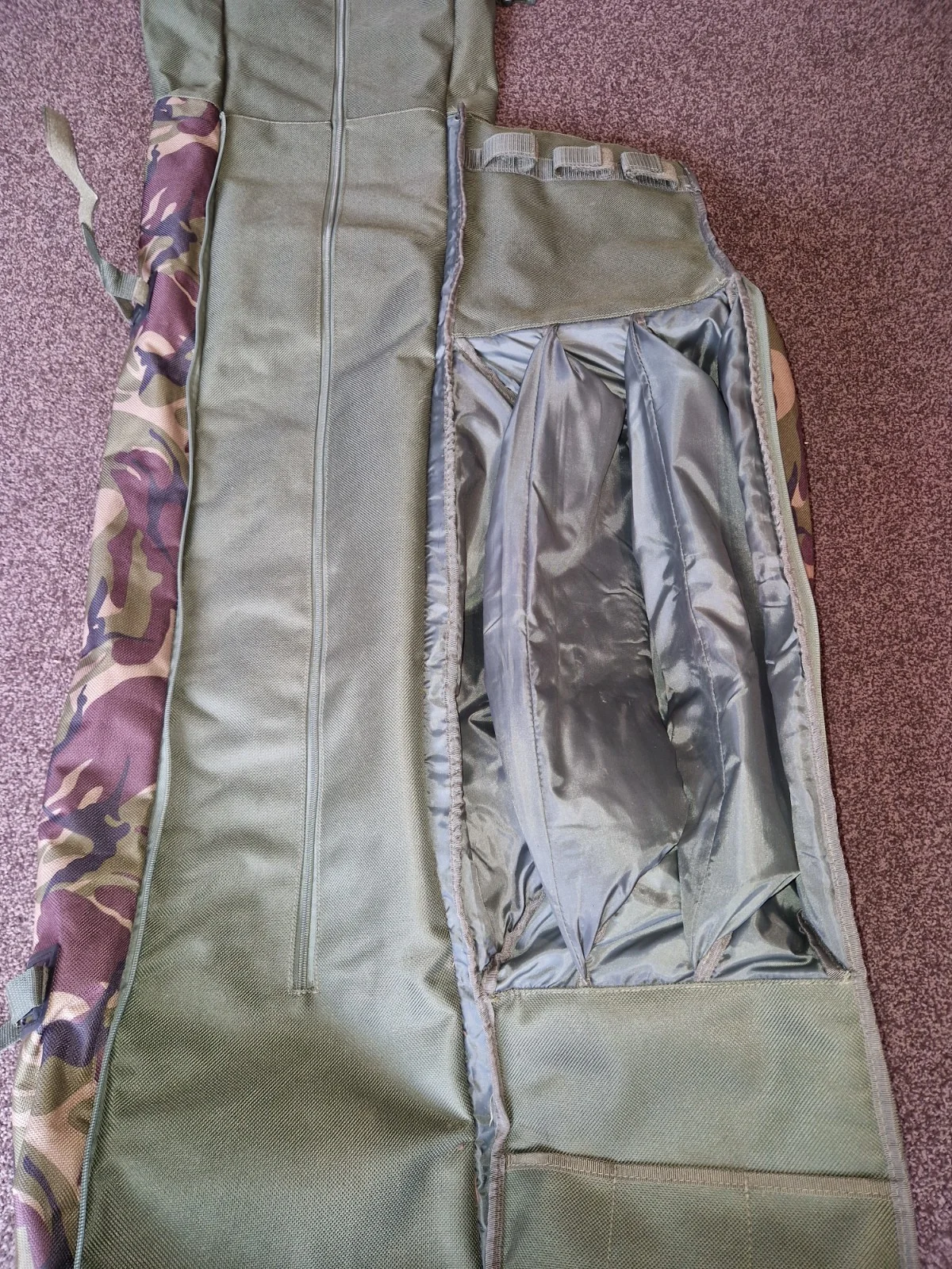 only used a had full of times pet fee smoke free home will accommodate 3 made up rods banksticks and brolly1200D materialShoulder strapPadded reel pouchesRoll top designLarge zipped compartmentExternal lead pocketDIMENSIONS: 1450mm (l) x 260mm (w) x 300mm (d)