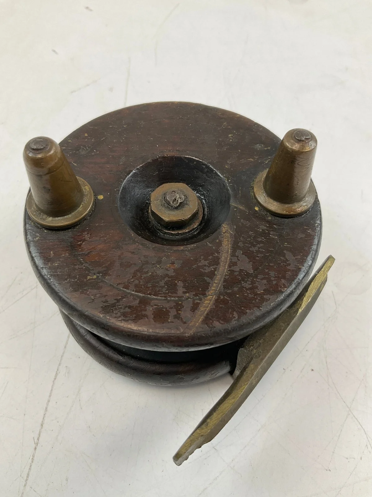 Vintage Wooden Centrepin Fishing Reel Brass Fittings Classic Design