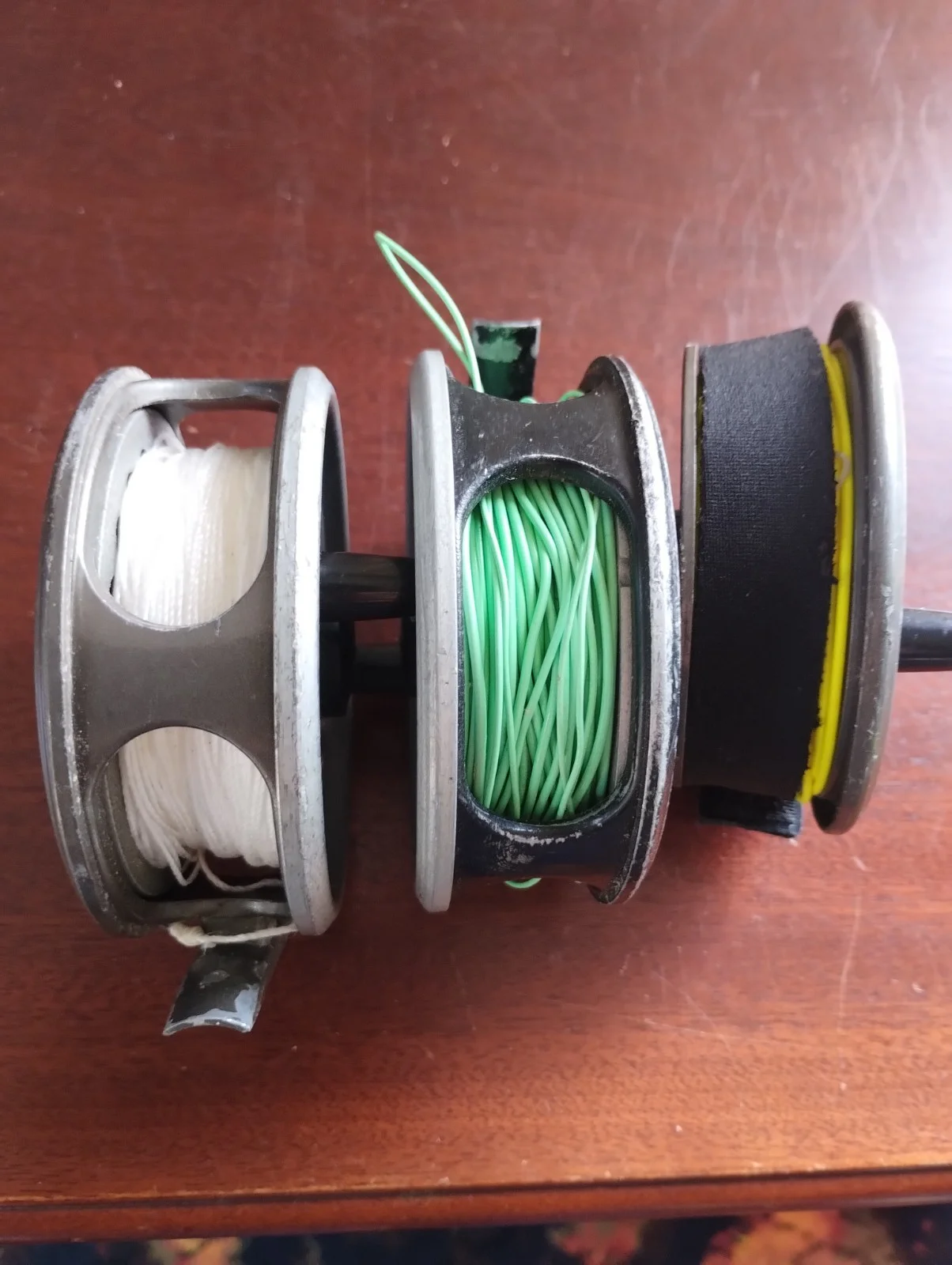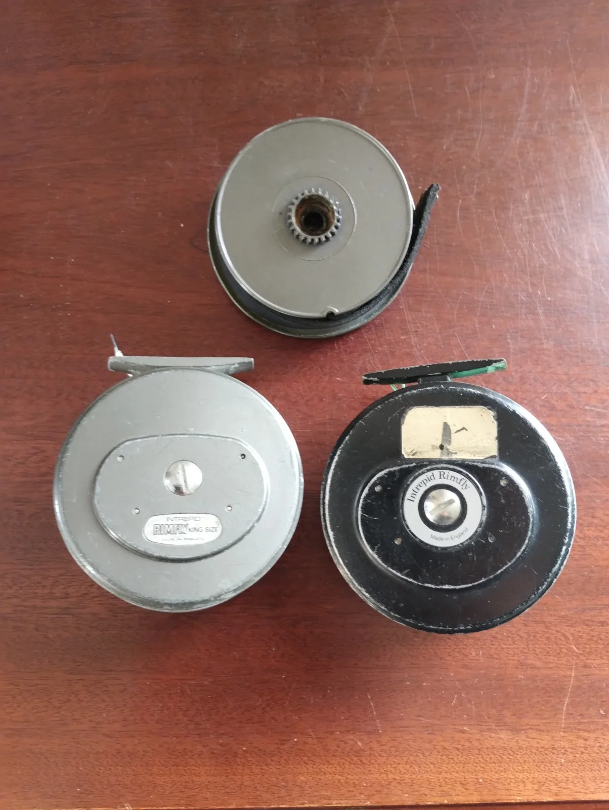 2 X INTREPID RIMFLY KING SIZE 3.5" DIA FLY FISHING REELS FLY LINE & SPARE SPOOL.
