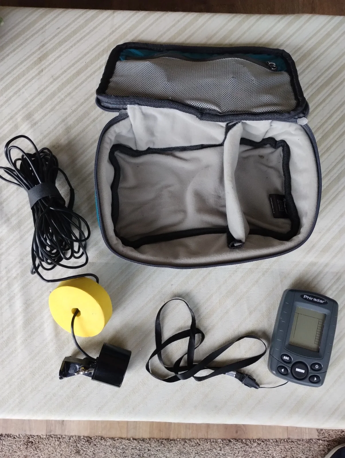 The Phiradar Portable 2.4" LCD Fish Finder offers a depth range of up to 240ft with its wired sonar feature, making it a valuable tool for fishing enthusiasts. This portable device provides accurate readings to help anglers locate fish more effectively, enhancing their overall fishing experience. With its compact size and easy-to-use interface, this fish finder is perfect for those looking to improve their chances of a successful fishing trip.all in great condition comes in a soft case and new batteries fitted.