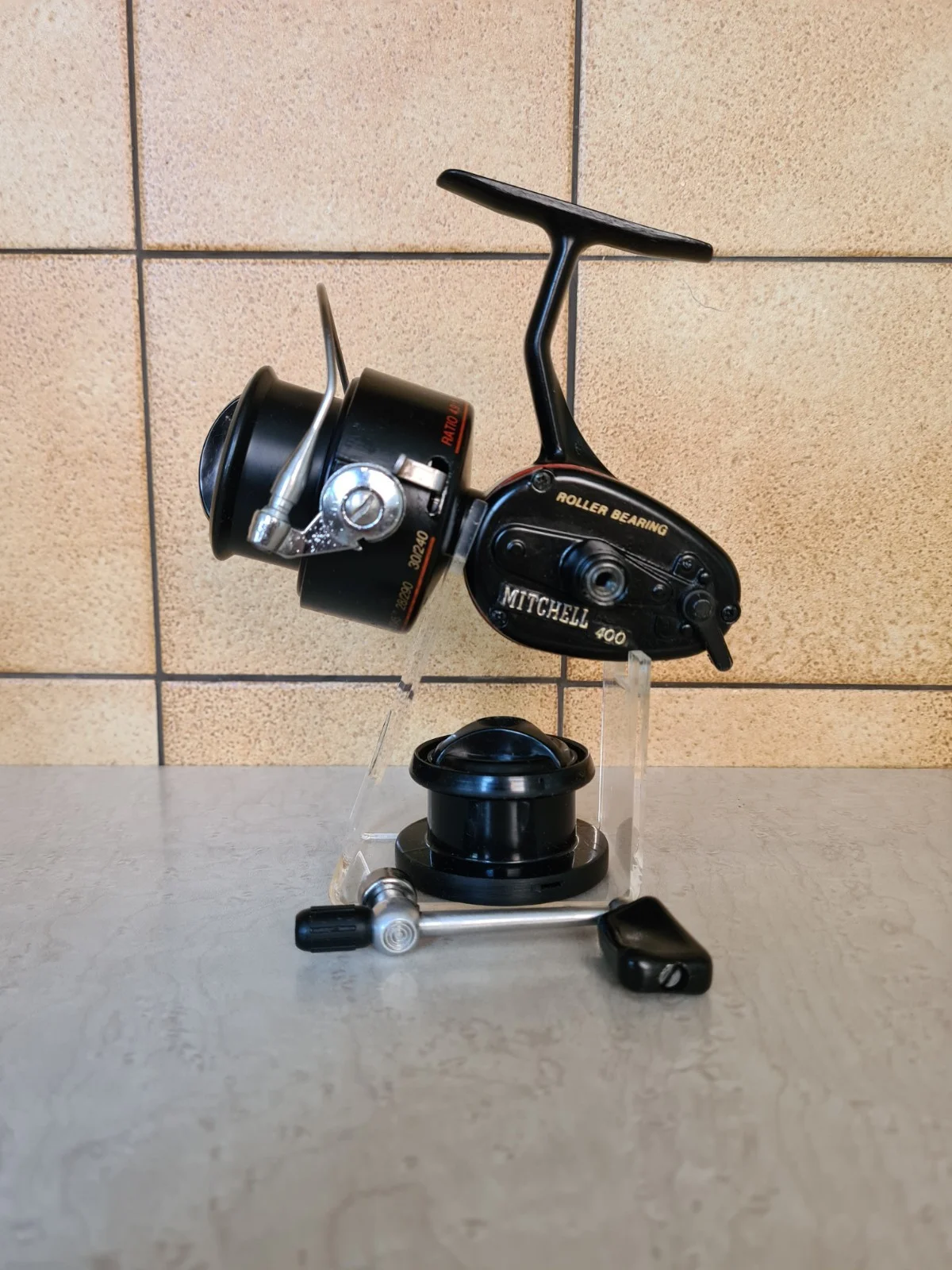 MITCHELL 400 REEL . EXCELLENT CONDITION. MADE IN FRANCE 1988 . SILENT ANTIREVERSE . FULLY SERVICED AND MECHANICALLY PERFECT . COMES WITH A SPARE SHALLOW SPOOL . A NICE SMOOTH RUNNING REEL IN EXCELLENT CONDITION AND IN PERFECT WORKING ORDER . WILL BE POSTED WELL PROTECTED AND IN A BOX . Please note stand not included in sale.