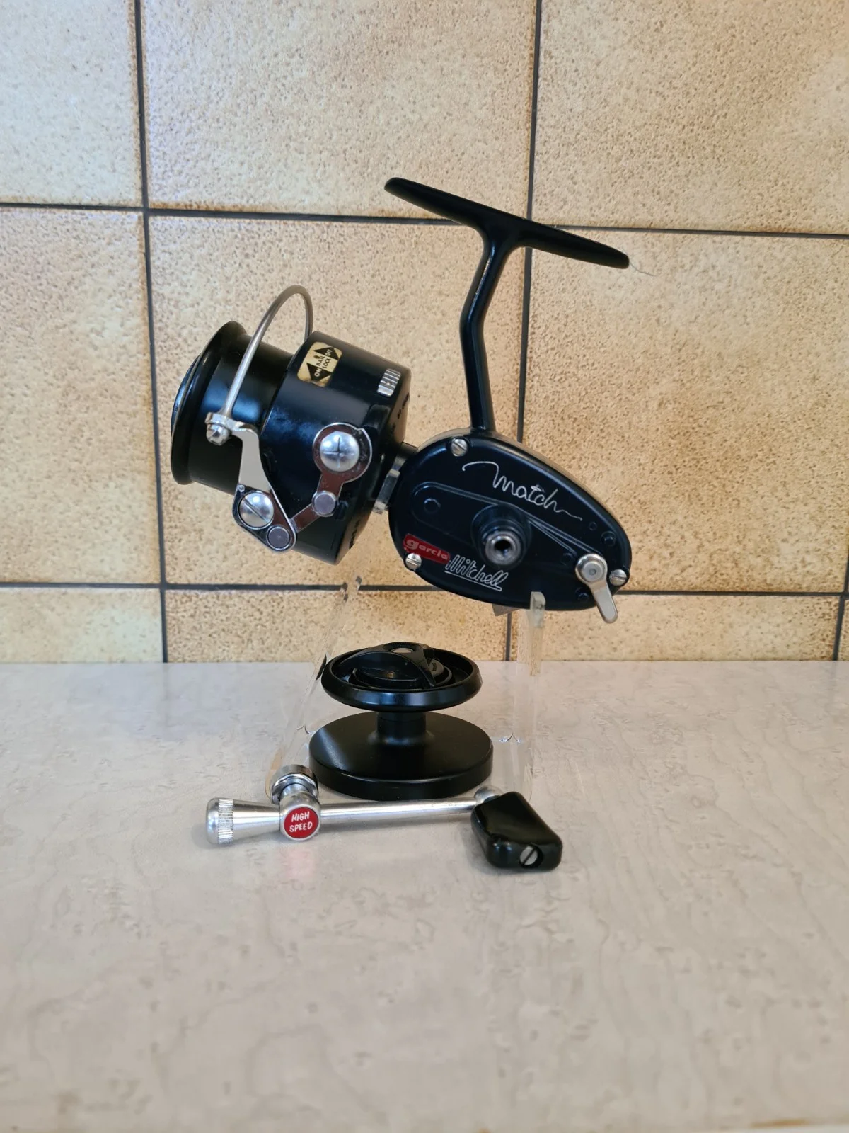 GARCIA MITCHELL MATCH REEL. MINT CONDITION . OUT OF MY OWN COLLECTION. MADE IN FRANCE 1973 . FULLY SERVICED AND MECHANICALLY PERFECT. COMES WITH A SPARE DEEP SPOOL . A GREAT COLLECTABLE REEL . VERY SMOOTH RUNNING REEL IN PERFECT WORKING ORDER . ITS A BEAUTY. WILL BE POSTED WELL PROTECTED AND IN A BOX . Please note stand not included in sale.