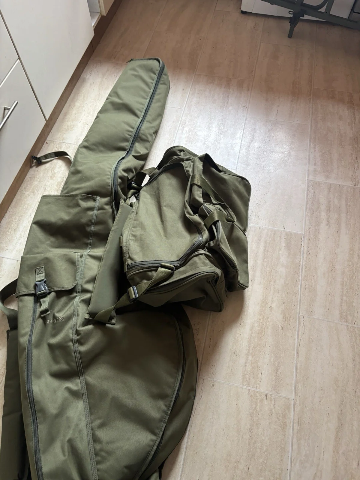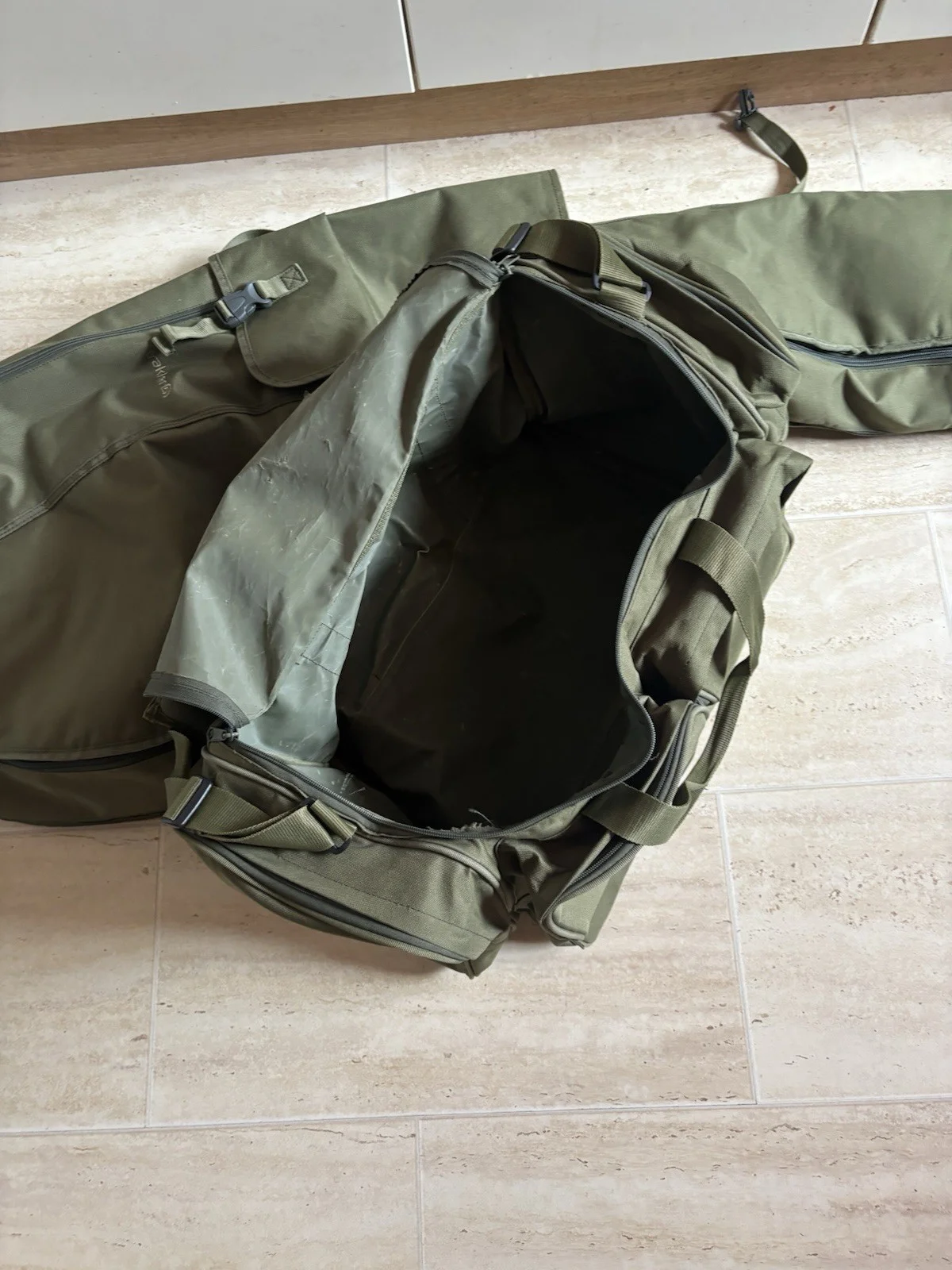 The Trakker NXG Carryall Tackle Bag is a versatile and durable accessory for fishing enthusiasts. Made from polyester, this soft-sided bag features a shoulder strap for easy transportation. With a water-resistant design, it is suitable for both freshwater and saltwater environments, making it ideal for all types of anglers. The green colour adds a stylish touch to the practicality of this tackle bag, perfect for keeping your gear organized and protected during fishing trips.And also trakker nxg 5 rod holdall Used few times mint condition no rips or tears almost new1 x 5 rod holdall 1 x carry all large Both trakker NXG