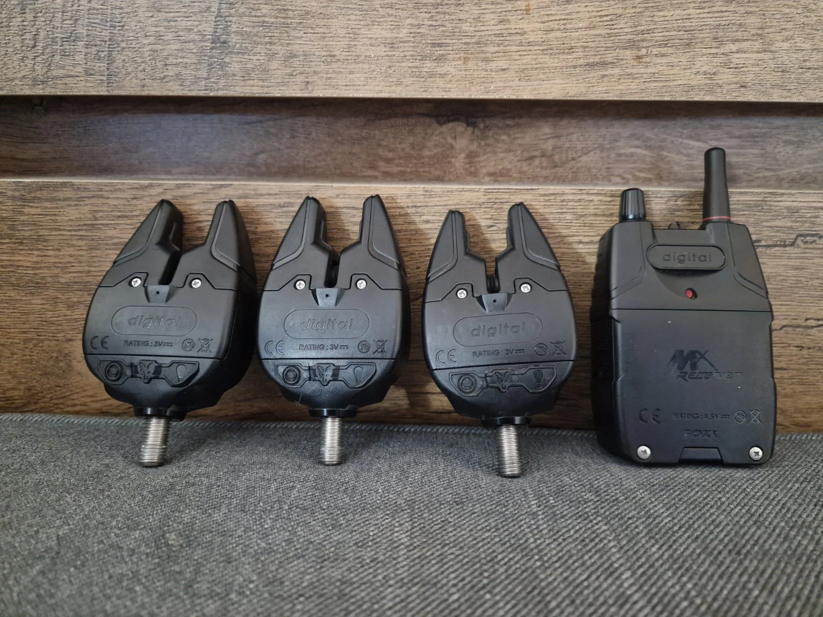 fox mini micron x rare camo bite alarm x2 receiver set carp fishing tackle boxed