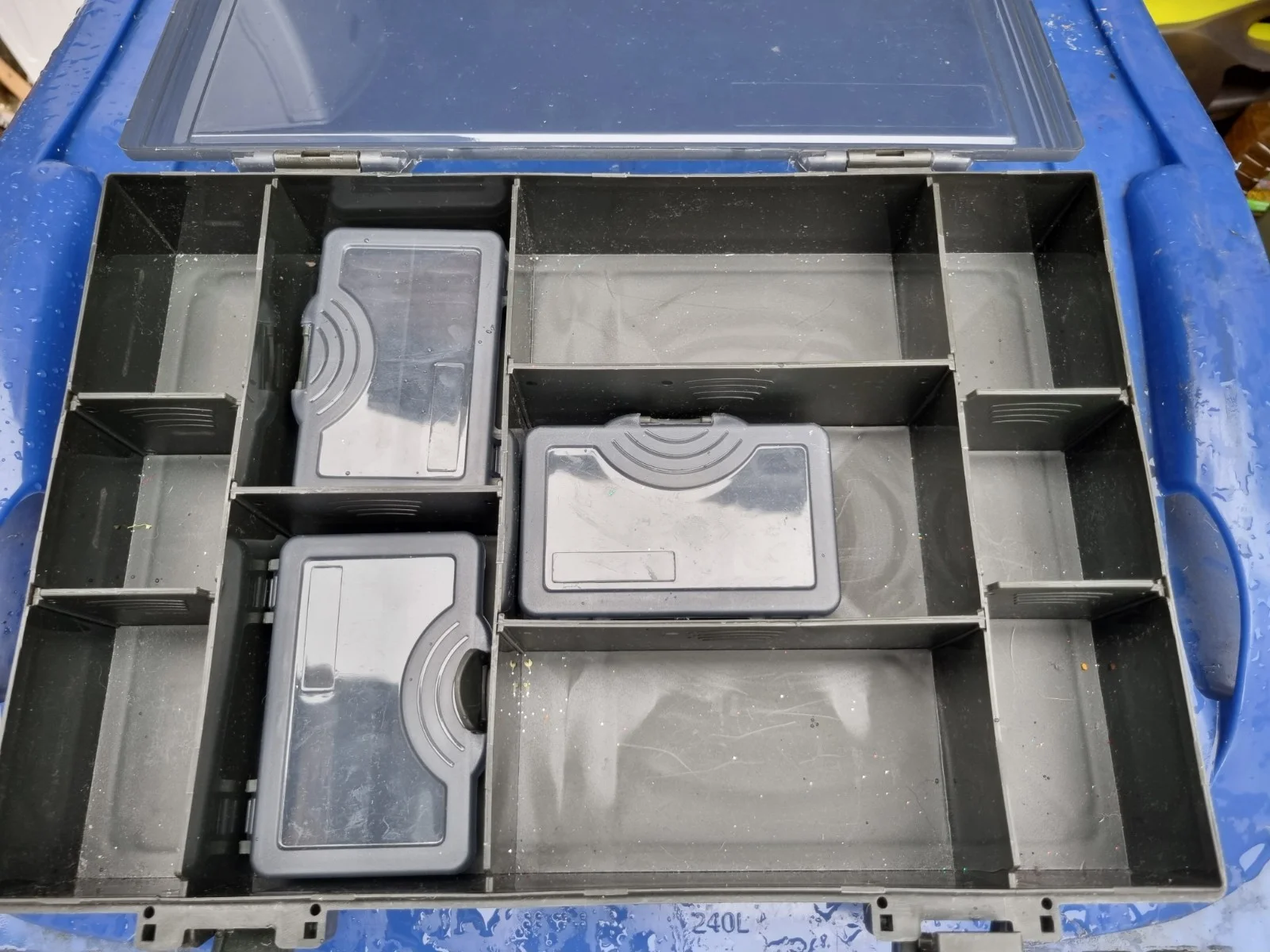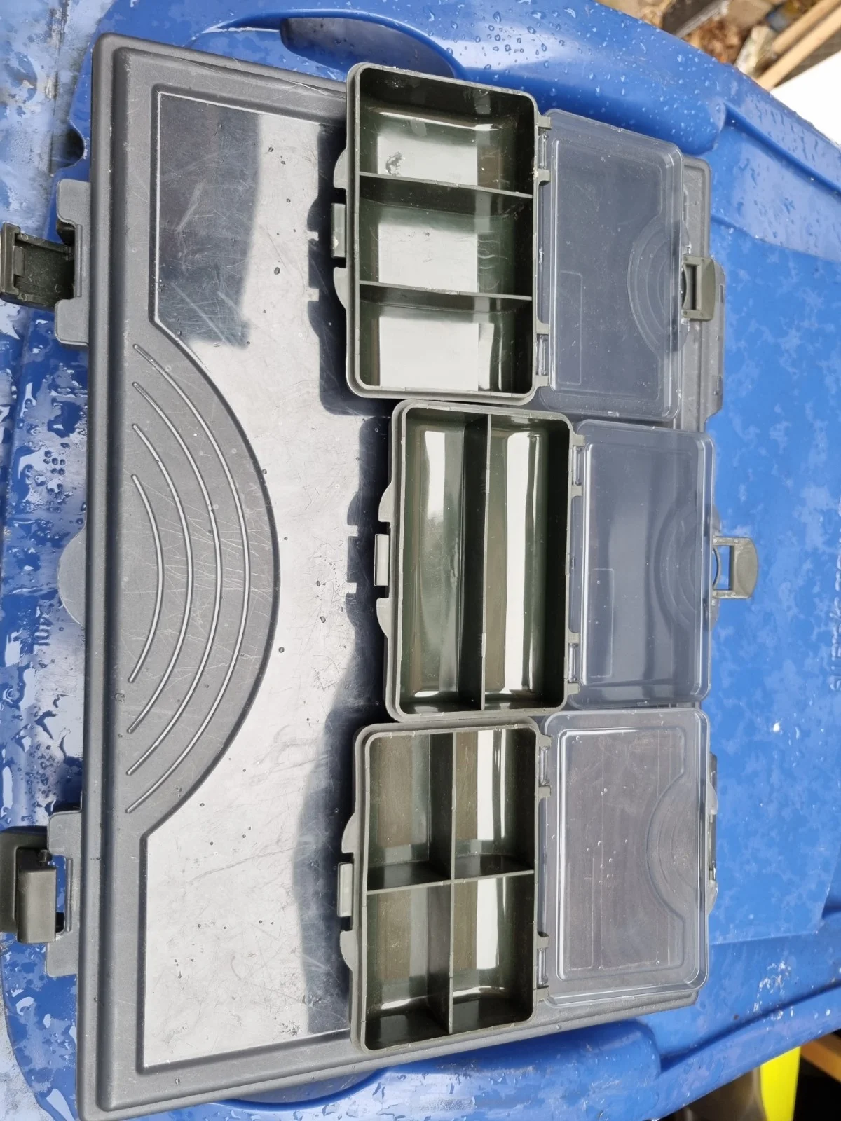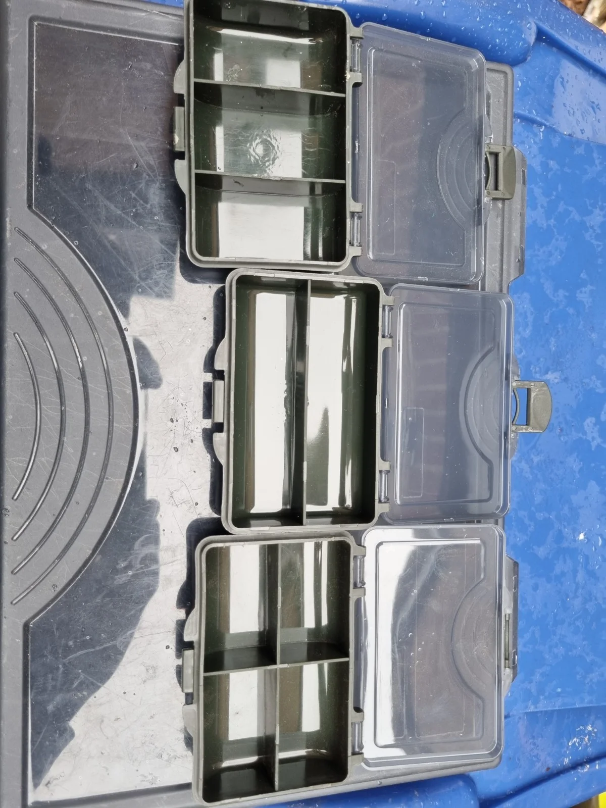 Carp Cat Fishing Tackle Box And 3 Bits Boxes Used But All Catches Fully Working