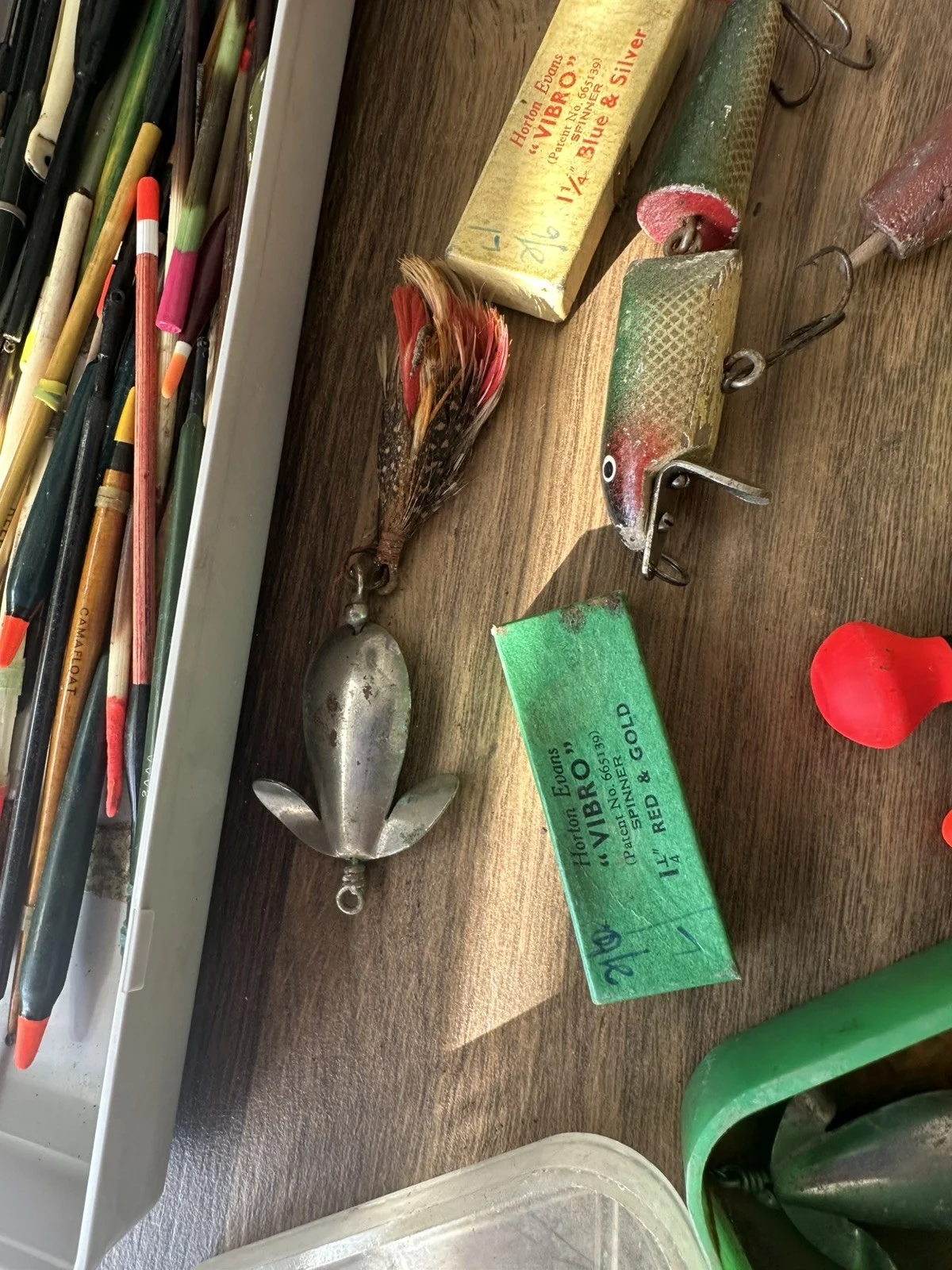 Old Fishing Floats Pike Bobbers and lures mixed lot in used condition.